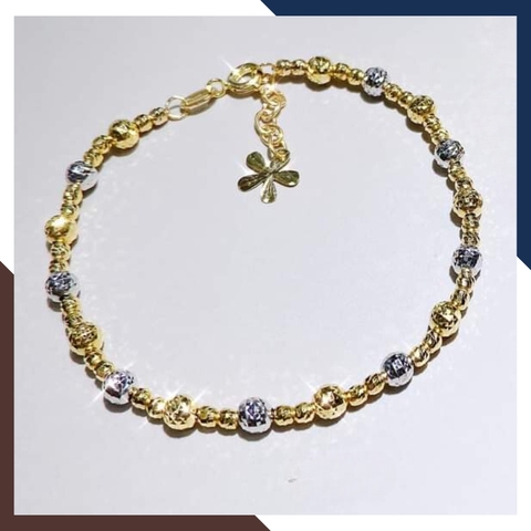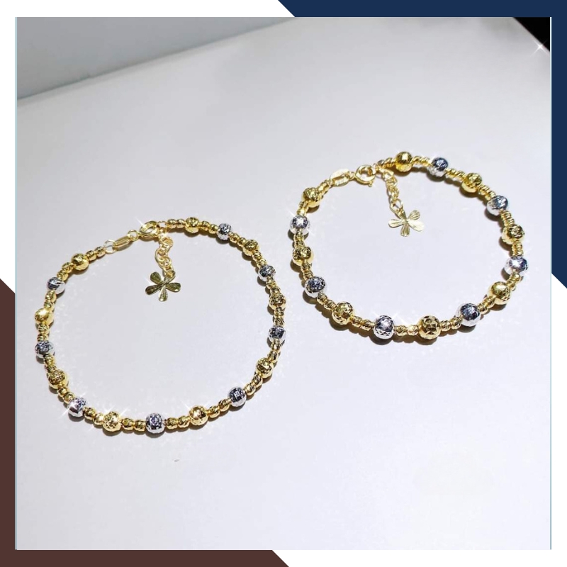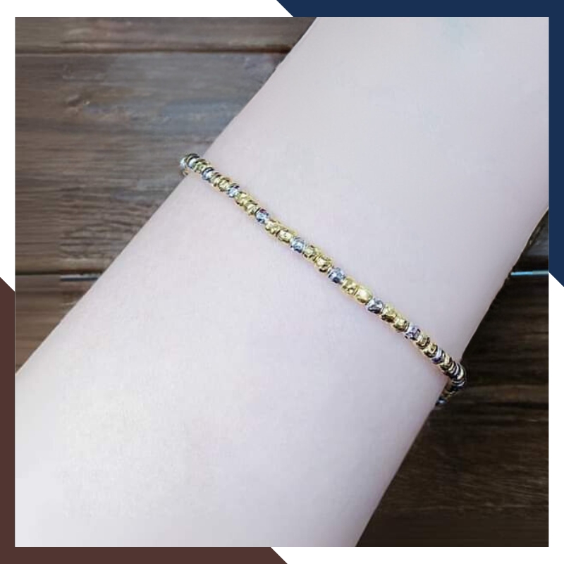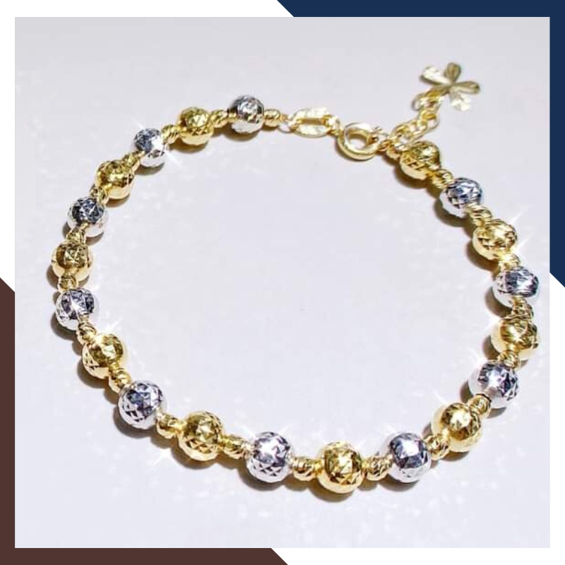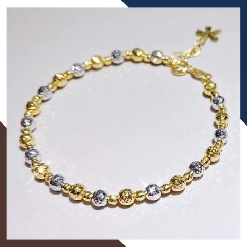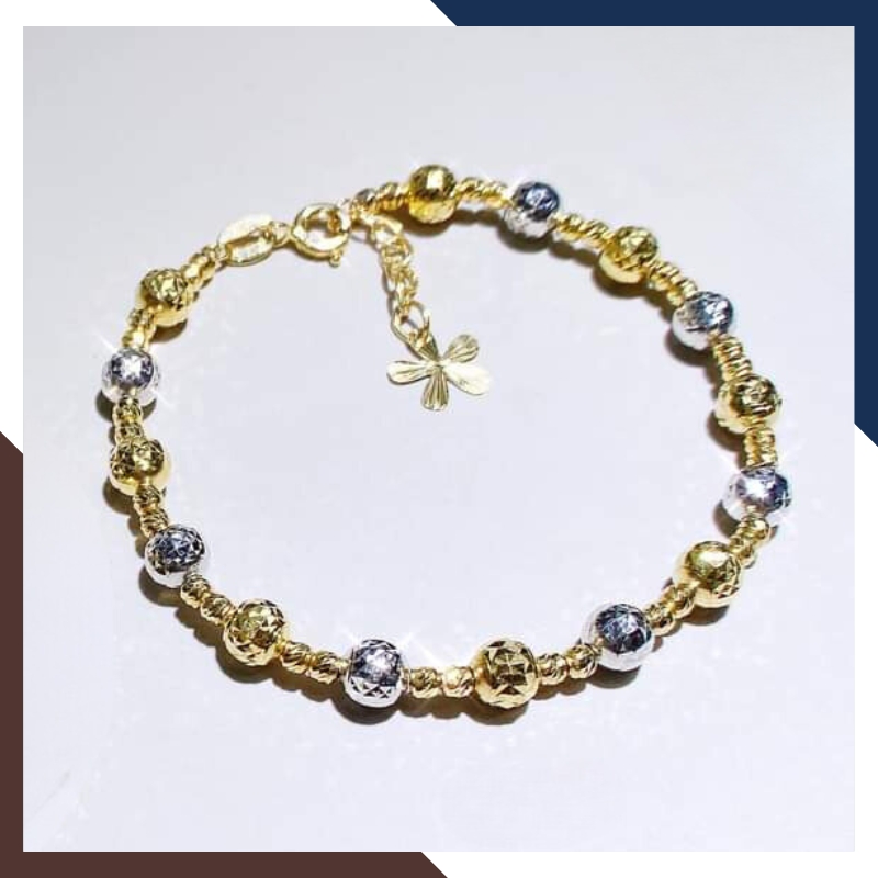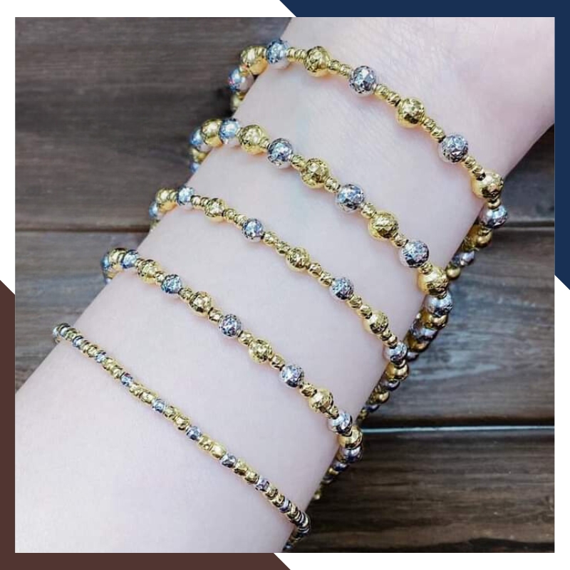 Lắc tay bi vàng tây 10k 2 màu cho nữ đẹp mã TL150, được làm từ chất liệu vàng Tây 10K với đặc tính không gây kích ứng cho da, đảm bảo độ bền và độ sáng bóng theo thời gian.