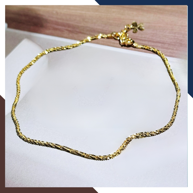 Kiểu dáng: Lắc chân vàng tây nữ 10k kiểu dây xù kim sa lấp lánh có tua chờ tự chỉnh size