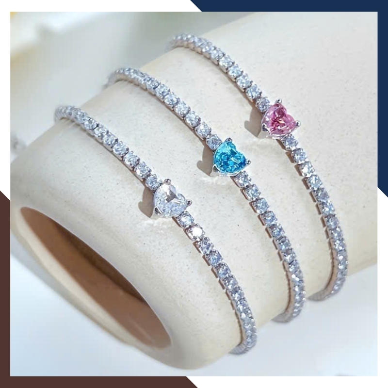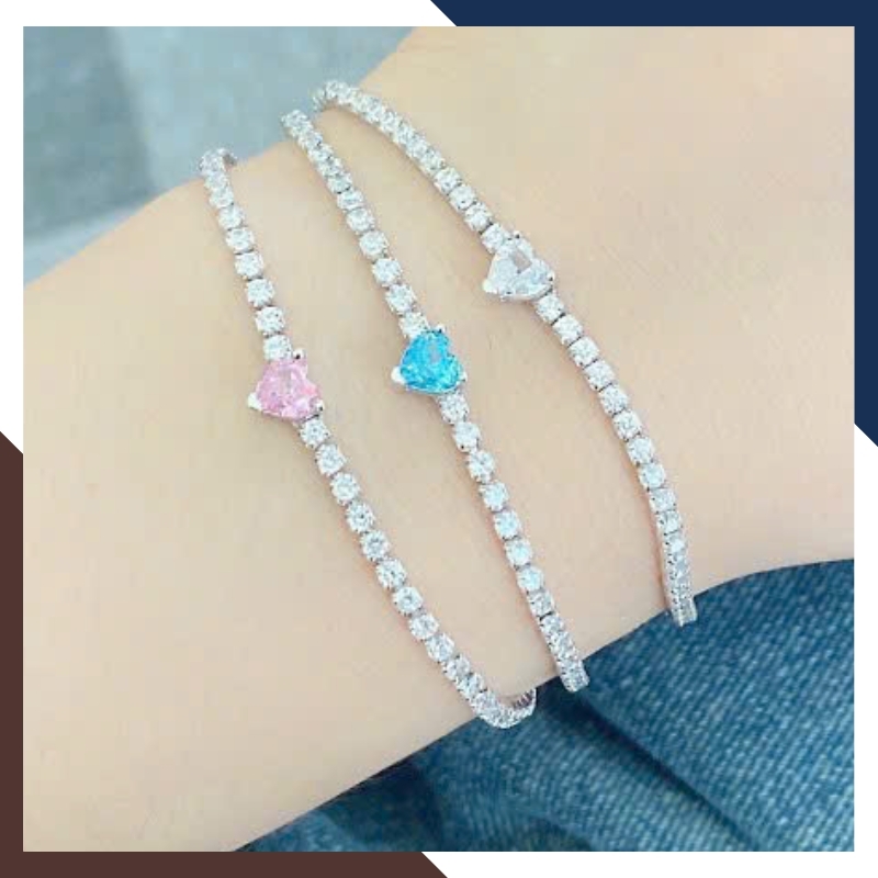 2.3. Lắc Tay Bạc Nữ Đính Đá Hột Xoàn Phối Trái Tim Đính Đá Màu Xanh, Hồng, Trắng, Đỏ – Kiểu Dáng Tinh Tế, Sang Trọng & Nổi Bật