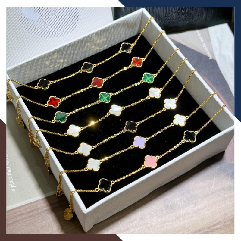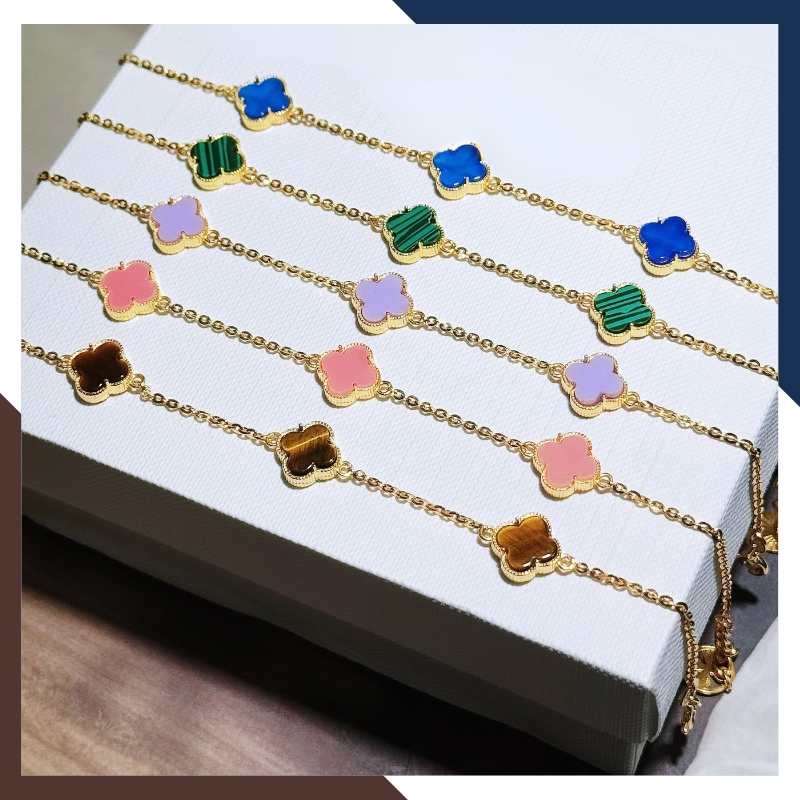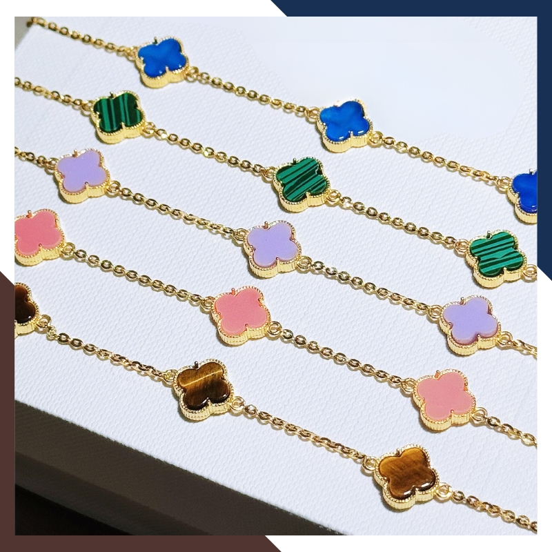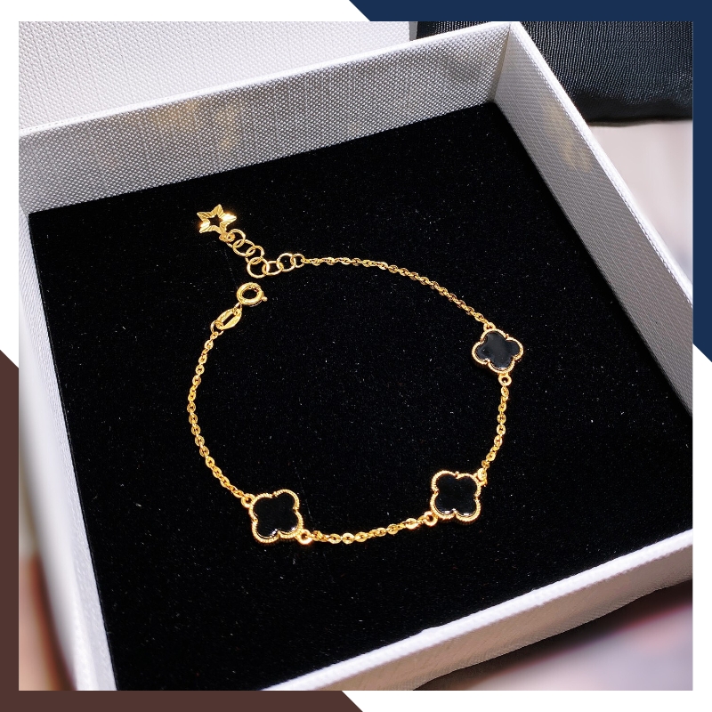 Lắc tay cỏ 4 lá vàng tây 10k đính đá đen, đỏ, trắng, xanh, vàng, hồng, tím cho nữ đẹp mã TL70
