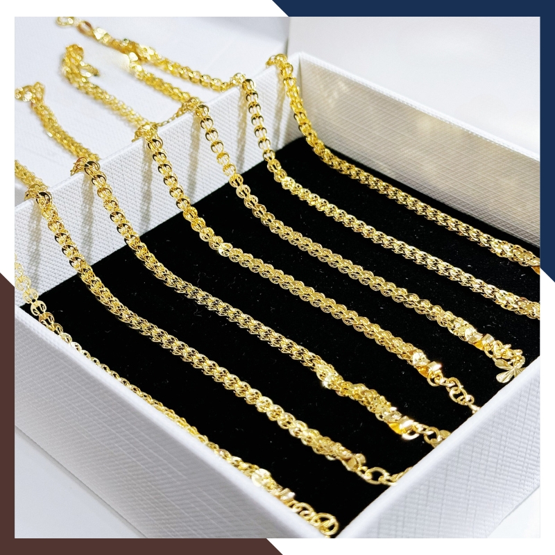 Chất liệu: vàng tây 10 karat - có giấy đảm bảo chất lượng chuẩn vàng 10k và giấy cam kết thu mua lại sản phẩm vàng cũ