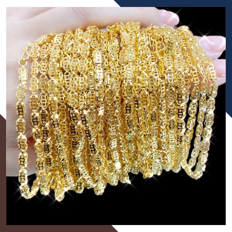 Thiết kế dây kim tiền vàng 10K lấp lánh – tượng trưng cho may mắn, tài lộc và thịnh vượng, kết hợp với chất liệu vàng tây 10K bền màu, giá hợp lý, dễ phối đồ.