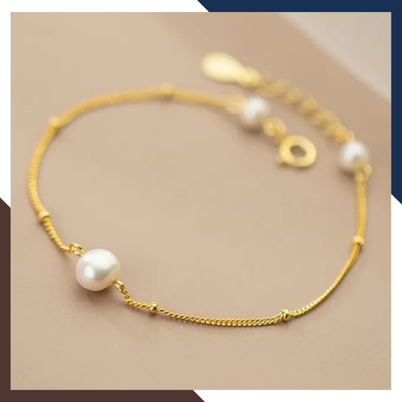 Kiểu dáng: Lắc tay bạc mạ vàng đính ngọc trai trắng