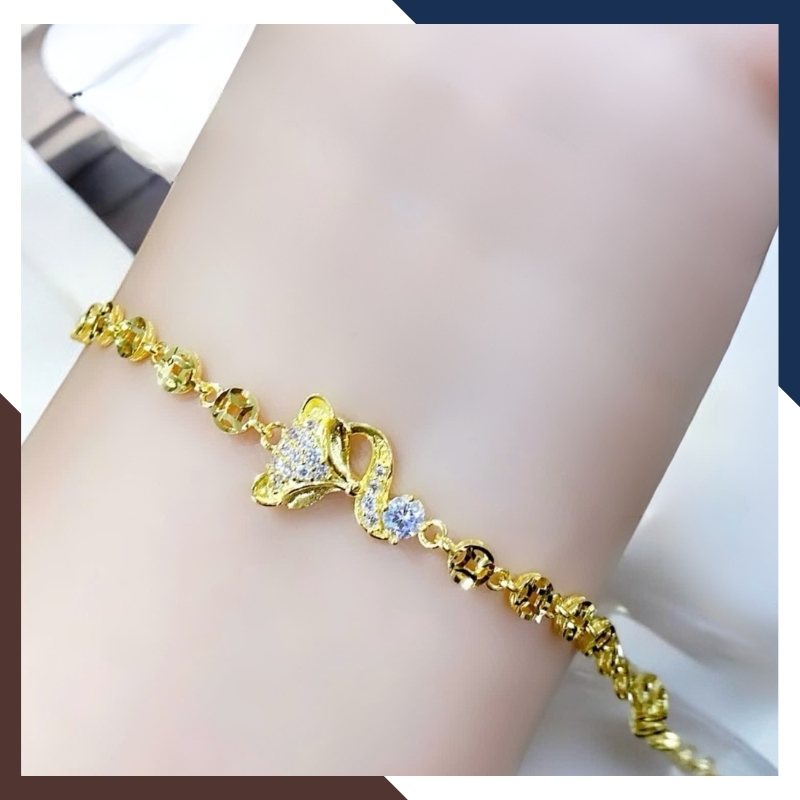 Một chiếc lắc tay vàng 10k nhưng hoàn thiện cao cấp – đính đá đẹp – sắc nét từng chi tiết.