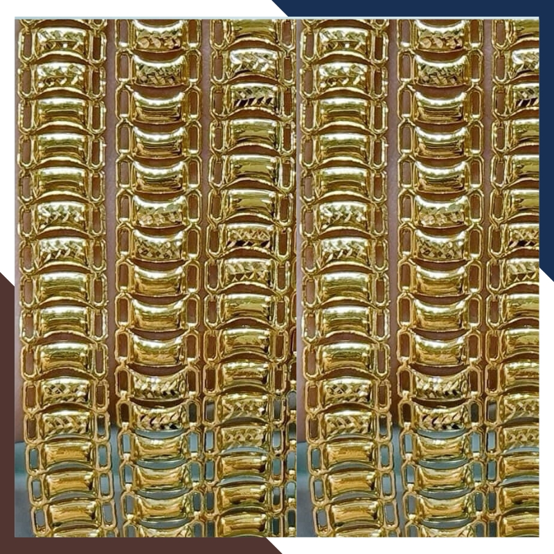 Lắc tay vàng cặp đôi nam nữ mã 115N145, được làm từ chất liệu vàng Tây 10K với đặc tính không gây kích ứng cho da, đảm bảo độ bền và độ sáng bóng theo thời gian. Điểm nhấn của mẫu lắc tay cặp đôi này chính là thiết kế kiểu lắc tay bản to, trọng lượng tầm 1 chỉ 5 phân vàng 10k. Mẫu thiết kế này không chỉ tạo nên một vẻ ngoài sang trọng, cuốn hút cho cả nam và nữ mà còn tạo cảm giác thoải mái khi đeo và dễ dàng kết hợp với nhiều loại trang phục khác nhau, từ trang phục hàng ngày, trang phục dạo phố cho đến trang phục công sở hay trang phục dự tiệc. Khi đeo chiếc lắc tay này mang lại một vẻ đẹp nhẹ nhàng, thanh lịch và không gian tỏa ra một năng lượng tích cực và lãng mạn, thu hút mọi ánh nhìn xung quanh.