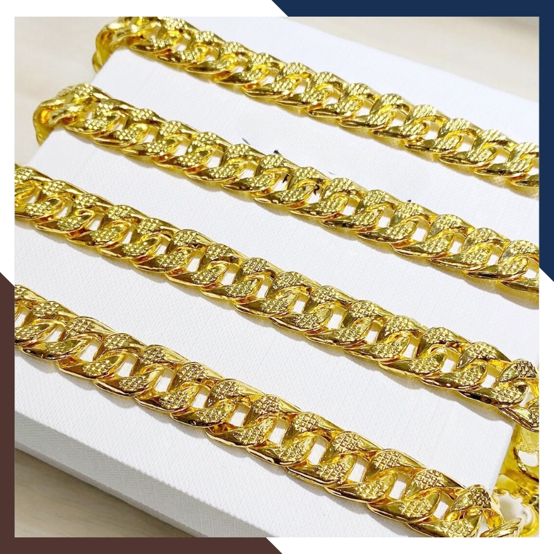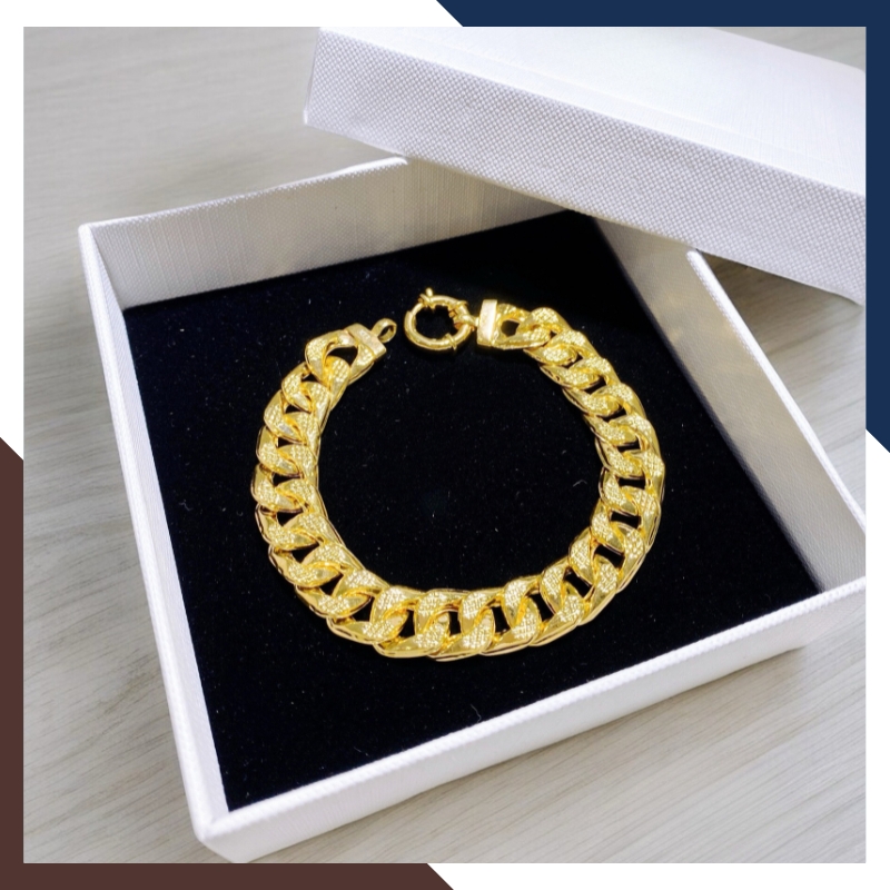 Lắc tay vàng nam, lắc cuban vàng tây 10k cho nam đẹp mã 215330361, được làm từ chất liệu vàng Tây 10K với đặc tính không gây kích ứng cho da, đảm bảo độ bền và độ sáng bóng theo thời gian. Điểm nhấn của mẫu lắc tay này chính là thiết kế kiểu lắc tay cuban ( lắc tay mắt xích bản to ). Với trọng lượng từ 2.15 chỉ đến 3.61 chỉ vàng 10k, mẫu thiết kế này không chỉ tạo nên một vẻ ngoài sang trọng, cuốn hút cho cánh mày râu mà còn tạo cảm giác thoải mái khi đeo và dễ dàng kết hợp với nhiều loại trang phục khác nhau, từ trang phục hàng ngày, trang phục dạo phố cho đến trang phục công sở hay trang phục dự tiệc. Khi đeo chiếc lắc tay này bạn sẽ tỏa ra một năng lượng tích cực trở nên mạnh mẽ và nam tính, thu hút mọi ánh nhìn xung quanh.
