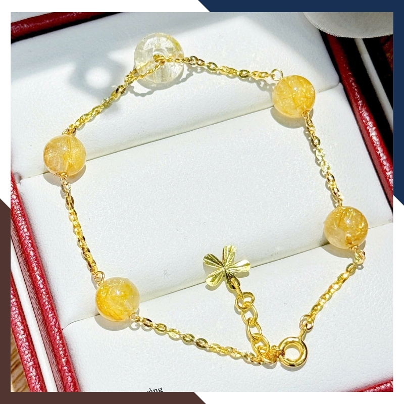 Lắc Tay Vàng Nữ 10K Gắn 5 Hạt Thạch Anh Tóc LTVN236 – Hợp Mệnh Kim Mộc Thủy Thổ | Ngọc Trai Anchi