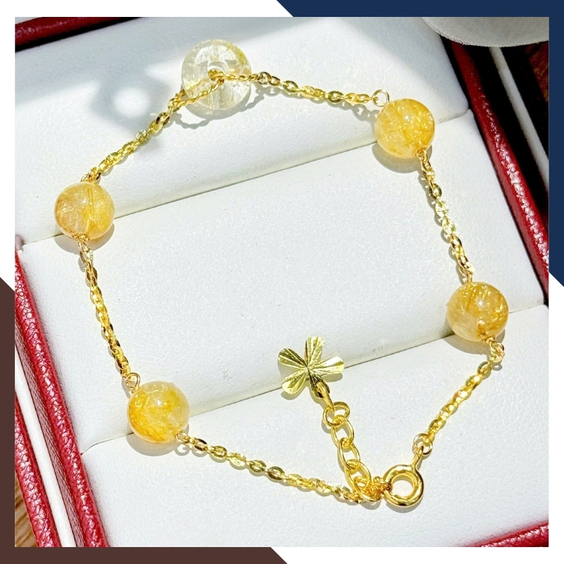 Lắc Tay Vàng Nữ 10K Gắn 5 Hạt Thạch Anh Tóc Tự Nhiên LTVN228