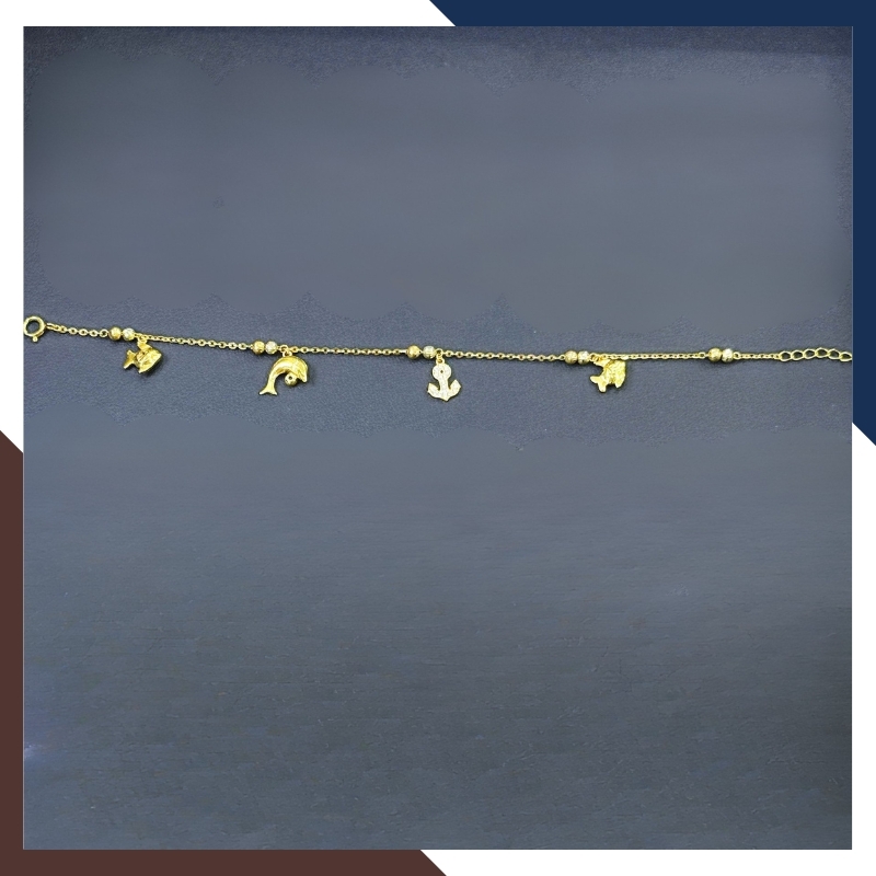 Tên sản phẩm: Lắc Tay Vàng Nữ 10K LTVN358 – Mix Charm Cá Heo, Cỏ 4 Lá & Bi Vàng 3 Màu Thanh Lịch