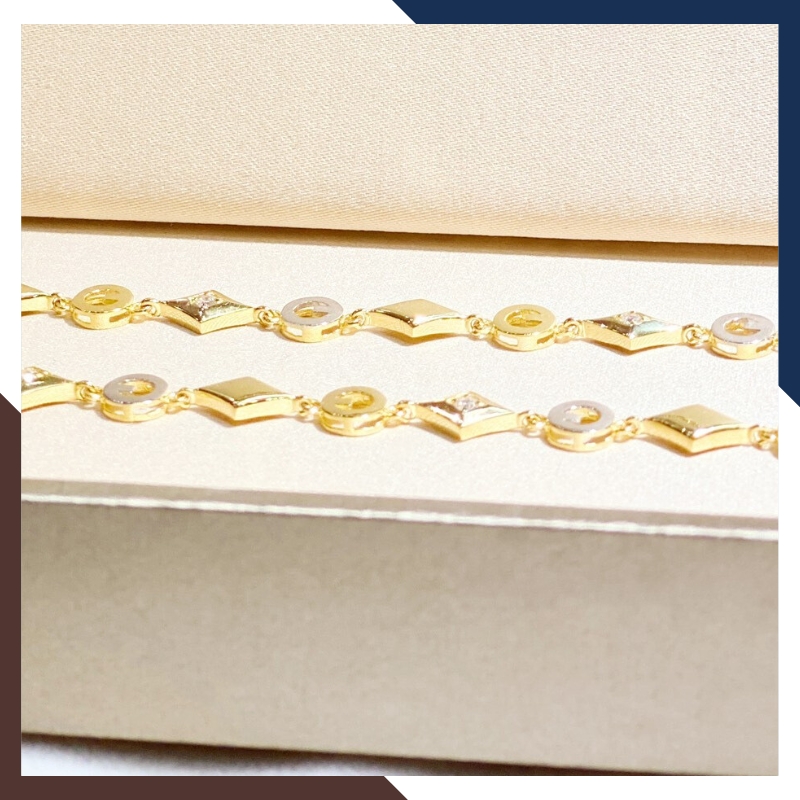 Kiểu dáng: Lắc tay vàng tây 10k hình tròn phối thình thoi đơn giản