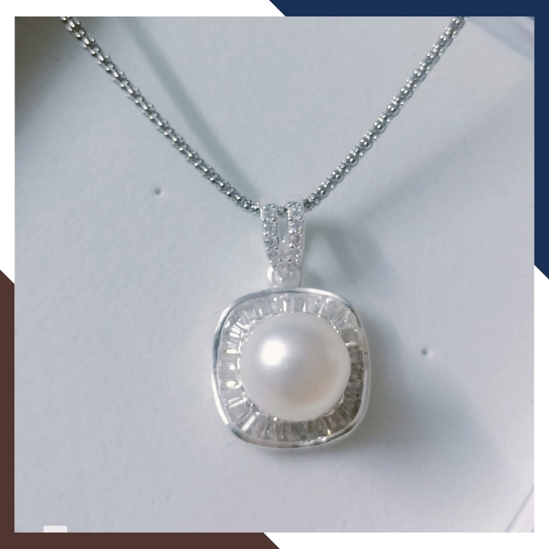Kiểu dáng: Mặt dây chuyền bạc 925 xi kim đính viên ngọc trai nước ngọt