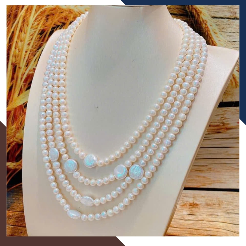 Nếu mẹ bạn thích sự nổi bật và khác biệt, vòng cổ đa tầng sẽ là lựa chọn hoàn hảo. Kiểu dáng này thường kết hợp từ 2-3 chuỗi ngọc trai, tạo nên hiệu ứng chiều sâu và sự sinh động cho bộ trang sức.