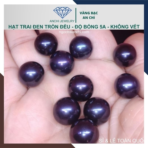 Viên ngọc trai nước ngọt tự nhiên 11mm - 12mm tròn xoe màu đen, Bỏ sỉ ngọc trai toàn quốc