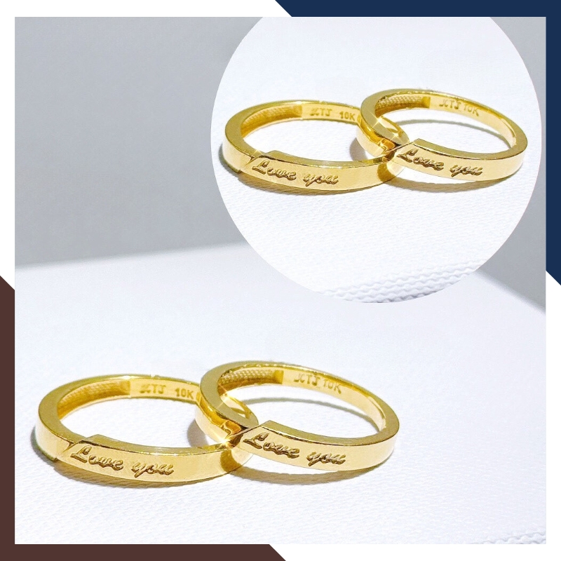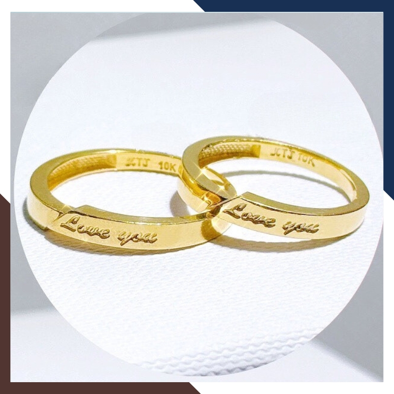 Kiểu dáng: nhẫn cưới cặp đôi nam nữ bằng vàng tây 10k kiểu trơn đơn giản khắc chữ " Love You "