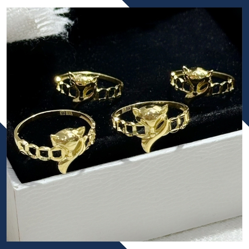 Kiểu dáng: nhẫn kim tiền hồ ly bằng vàng tây 10k ( hay còn được gọi là nhẫn kim tiền lộc kép hay nhẫn kim tiền lộc kép hồ ly )
