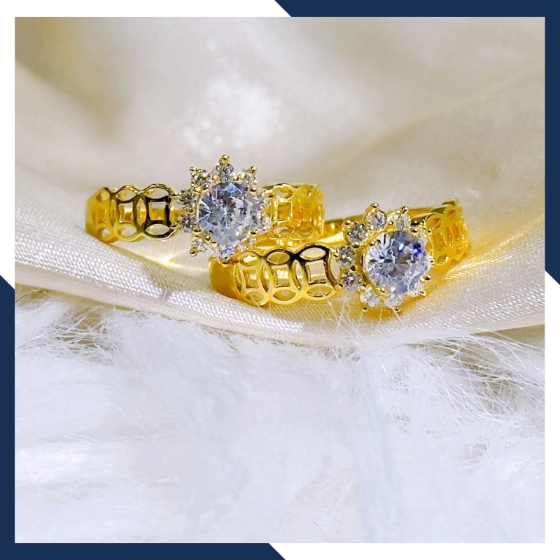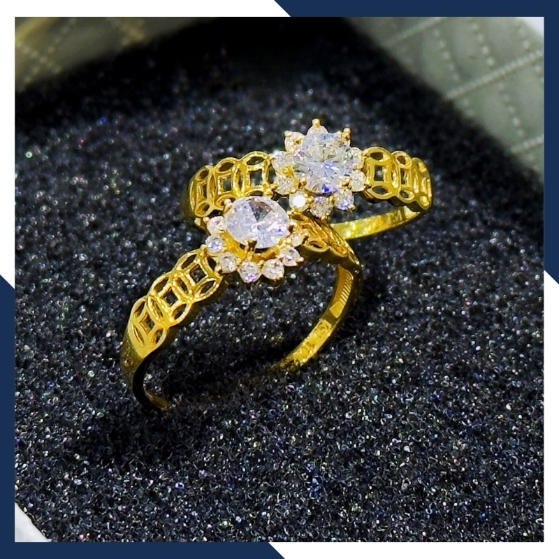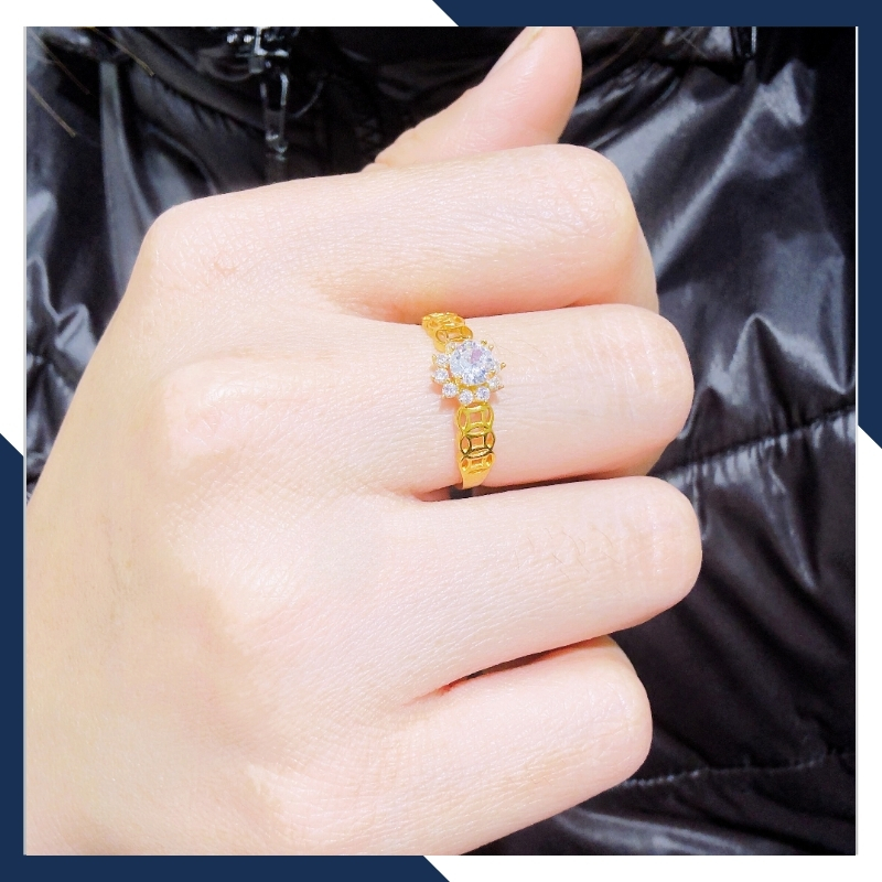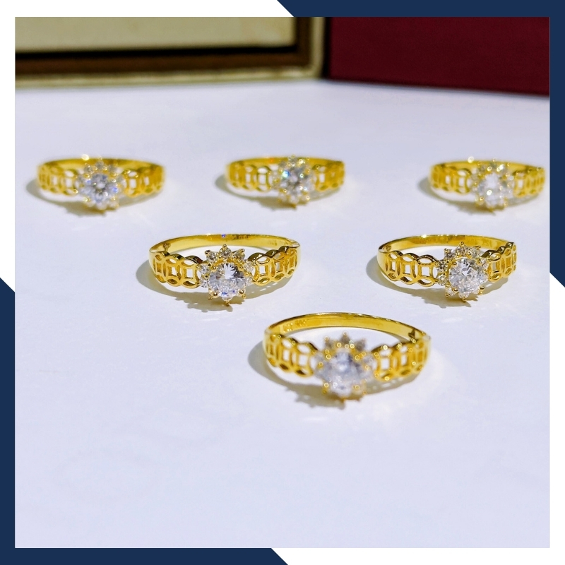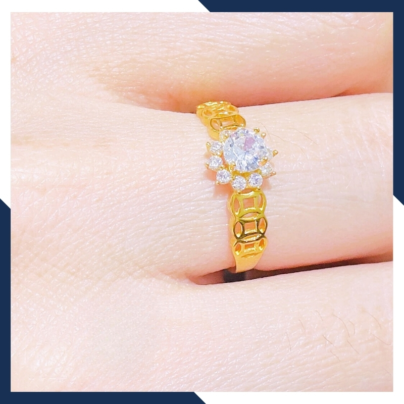 Kiểu dáng: nhẫn kim tiền vàng tây 10k đính đá