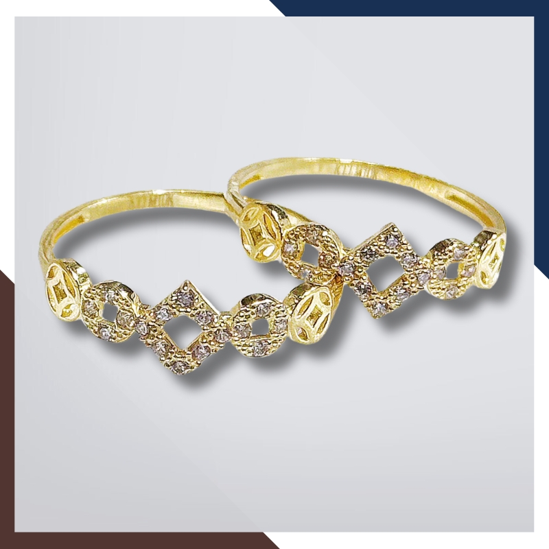 Nhẫn kim tiền vàng tây 10k đính đá tài lộc ngày vía thần tài mã 927TL31, là loại nhẫn vàng phong thủy được lấy cảm hứng thiết kế theo họa tiết của đồng tiền xu cổ, các đồng xu được xâu chuỗi nối tiếp nhau tinh tế - với ý nghĩa tượng trưng cho sự thịnh vượng. Cát khí của đồng tiền xu được xem như nguồn tài lộc của cải để chiêu tài, hút lộc, đem lại nhiều may mắn về công danh, sự nghiệp cho chủ sở hữu, giải trừ tai họa, tránh tiểu nhân. Đặc biệt với những người buôn bán, làm ăn kinh doanh thì nhẫn kim tiền giúp việc làm ăn trở nên thuận lợi, may mắn và thành công.