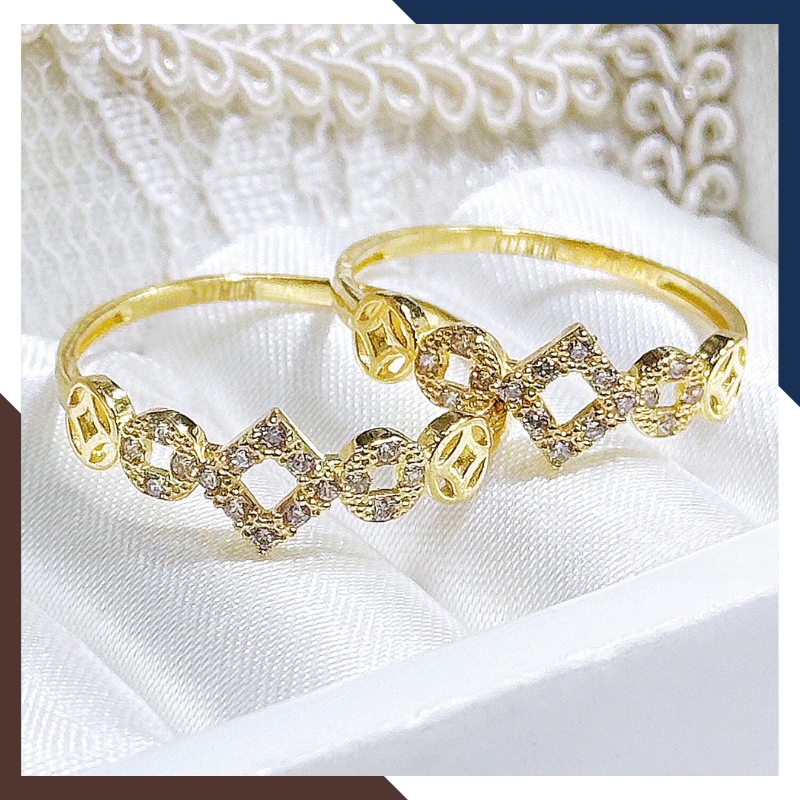 Kiểu dáng: nhẫn kim tiền vàng tây 10k đính đá