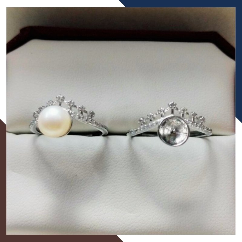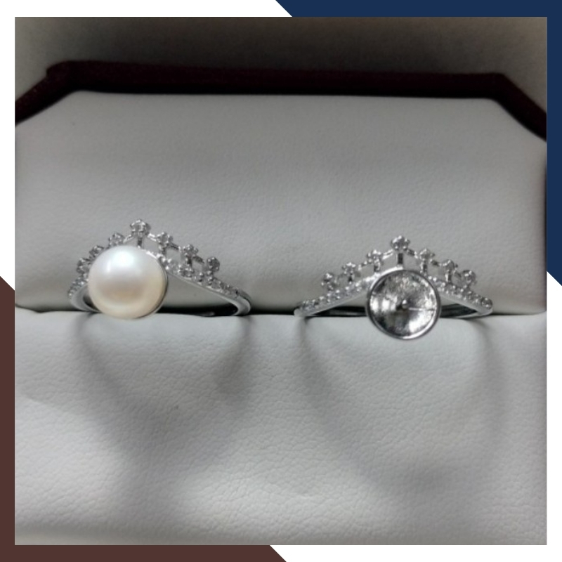 Kiểu dáng: Nhẫn ngọc trai thật tròn hình vương miện bằng bạc Ý mạ bạch kim
