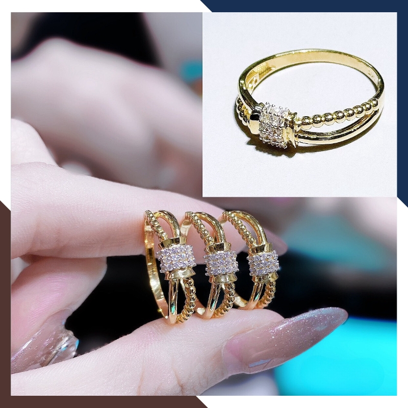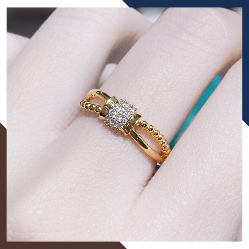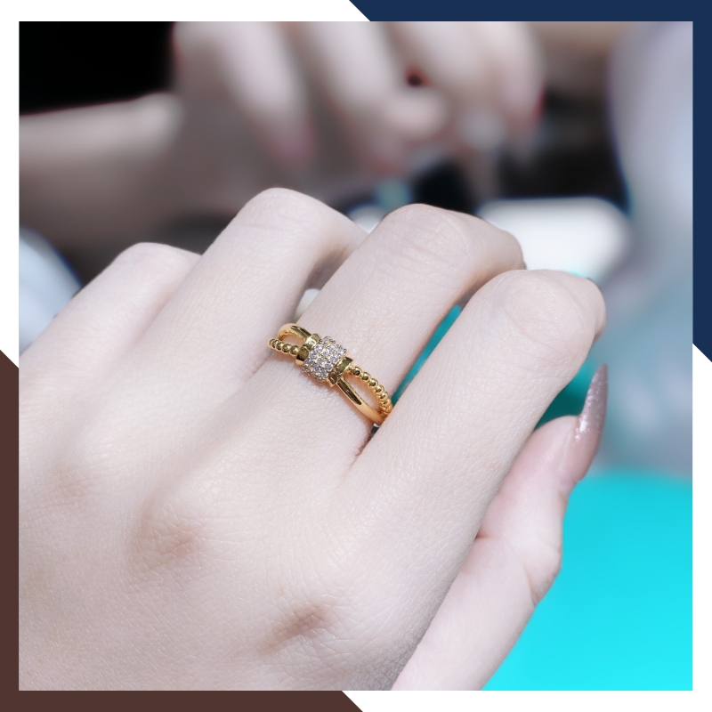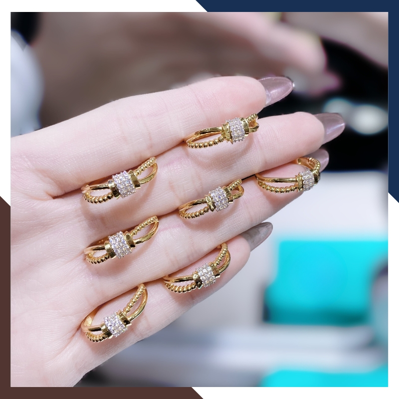 Kiểu dáng: Nhẫn vàng hình nơ kiểu 2 vòng đính đá dễ thương