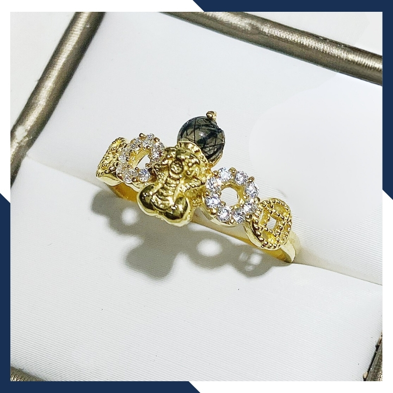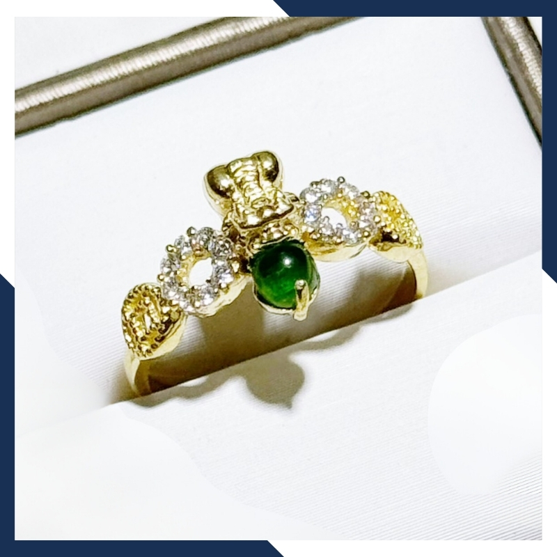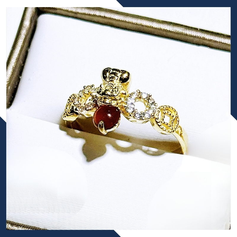 Kiểu dáng: nhẫn kim tiền mặt hình tỳ hưu bằng vàng tây 10k ngậm ngọc