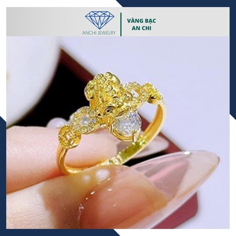 Nhẫn tỳ hưu vàng tây 10k phong thủy cho nữ, nhẫn kim tiền tỳ hưu ngậm ngọc mã D80TL47