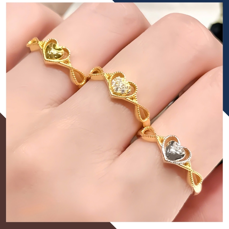 Phong cách hằng ngày: đeo nhẫn mẫu trái tim nối liền, phối cùng vòng cổ mảnh hoặc bông tai nhỏ để tạo sự thanh lịch.