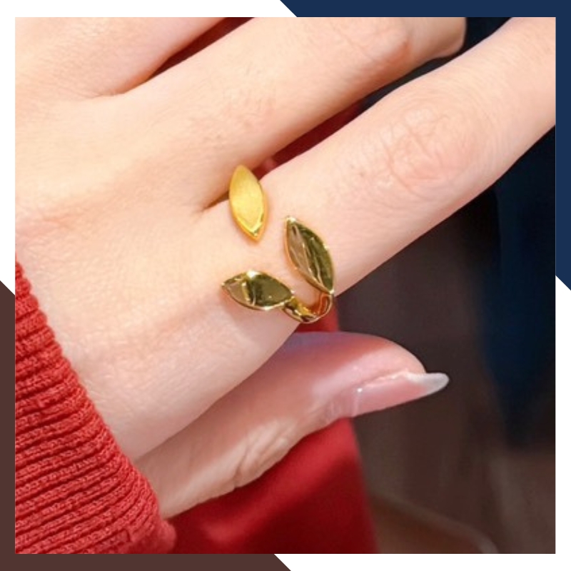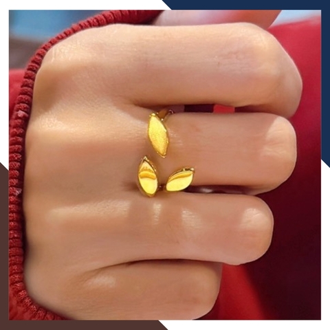 Kiểu dáng: Nhẫn vàng nữ 24k 9999 hình 3 chiếc lá độc lạ kiểu nhẫn hở freesize trẻ trung cá tính