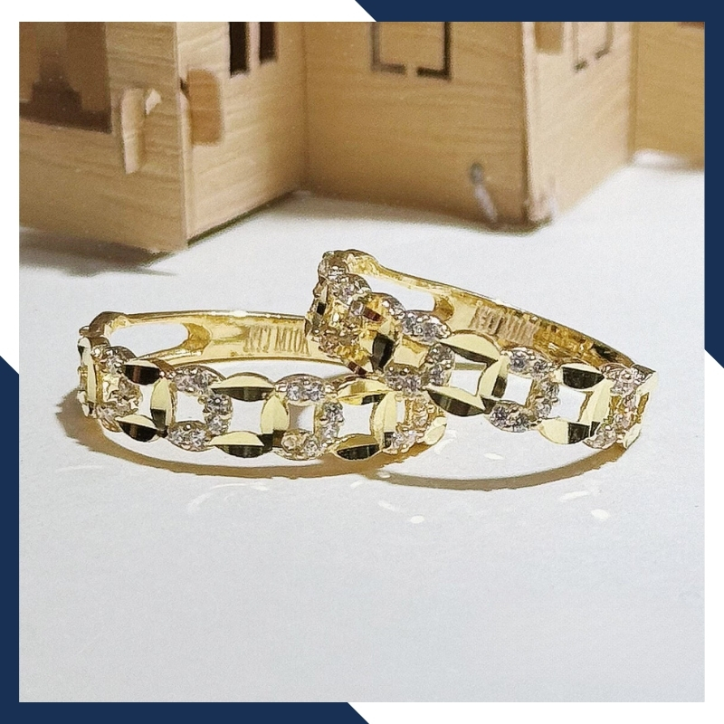 Chất liệu: vàng tây 10 karat - có giấy kiểm định tuổi vàng bằng máy đo quang phổ và giấy cam kết thu mua lại sản phẩm vàng cũ