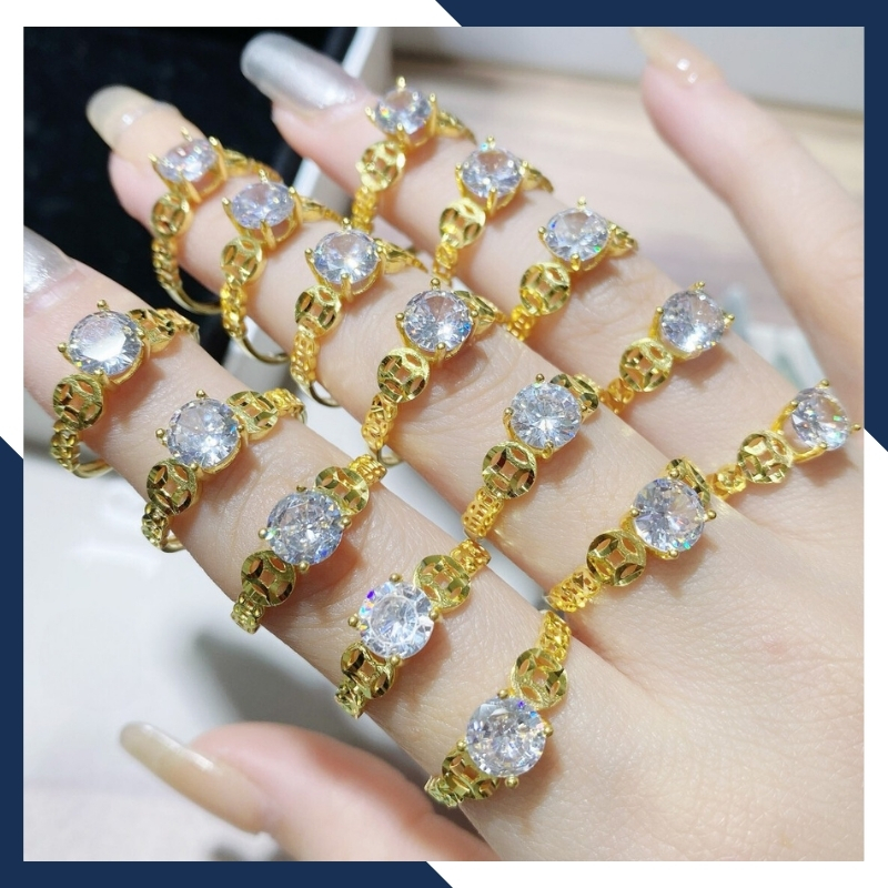 Kiểu dáng: nhẫn kim tiền vàng tây 10k đính đá