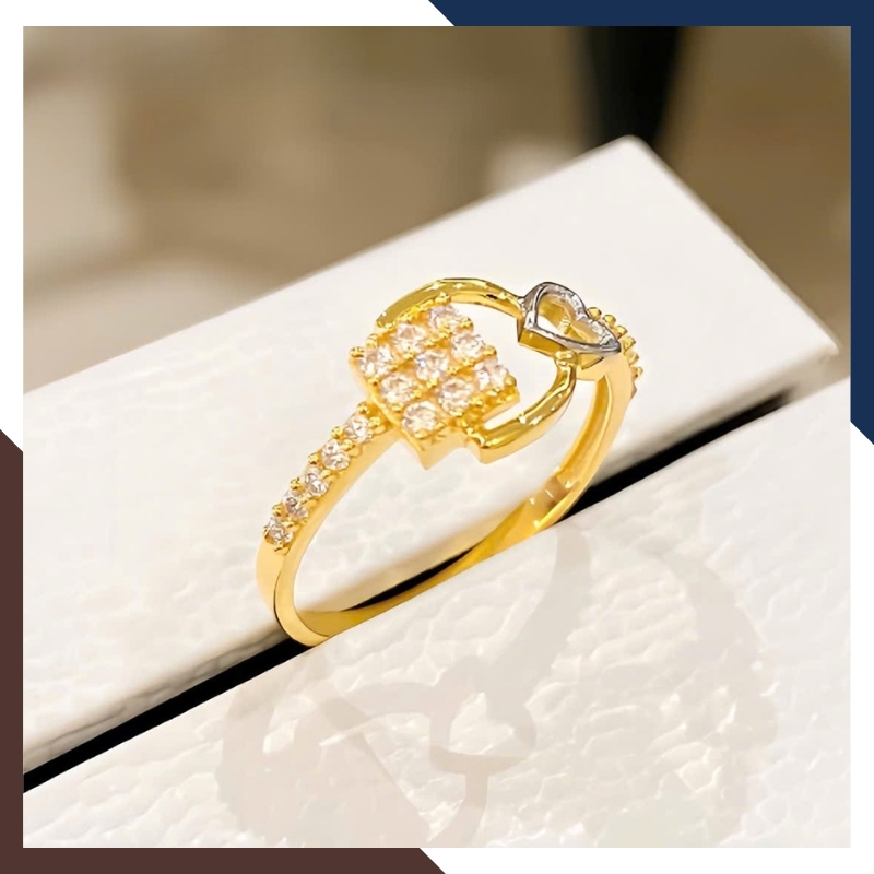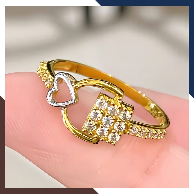 Sản phẩm được chế tác từ vàng tây 10k kết hợp đá CZ lấp lánh, mang đến vẻ đẹp hiện đại, sang trọng nhưng vẫn đầy lãng mạn. Với hình tượng trái tim – biểu tượng muôn đời của tình yêu – cùng ổ khóa tình yêu tượng trưng cho sự gắn kết, chiếc nhẫn trở thành thông điệp tinh tế thay lời muốn nói: “Trái tim em chỉ thuộc về anh, và anh sẽ giữ mãi tình yêu này”.