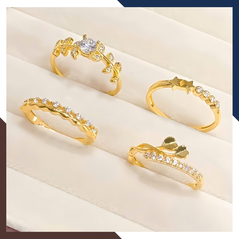 → Gồm 4 mẫu nhẫn mảnh, mỗi mẫu có thiết kế riêng để bạn thoải mái phối hợp. -
