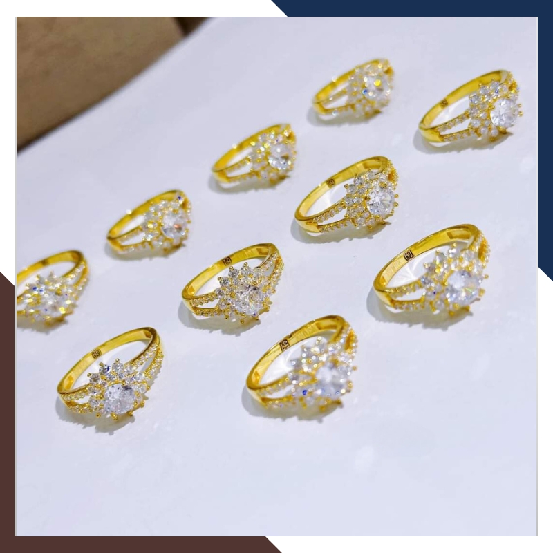 Kiểu dáng: nhẫn vàng tây nữ đính đá hình hoa - Mẫu nhẫn vàng nữ đẹp 2022 giá dưới 3 triệu