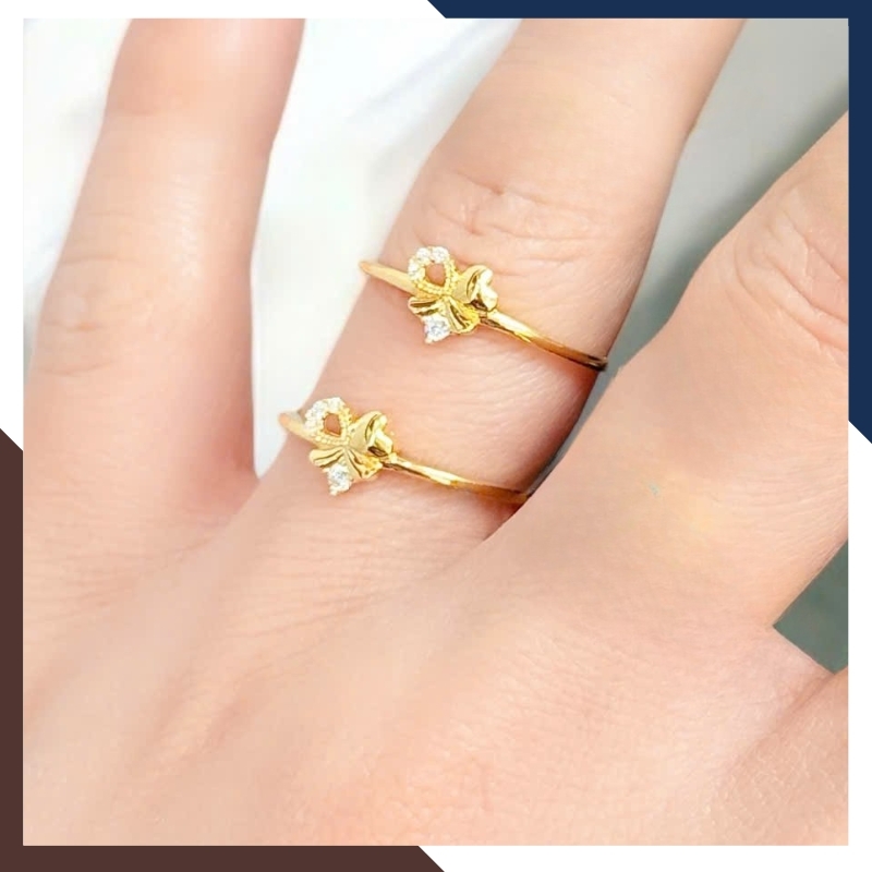 Mẫu 3: Nhẫn hình nơ nhỏ xinh + đá điểm xuyết → duyên dáng, thanh lịch