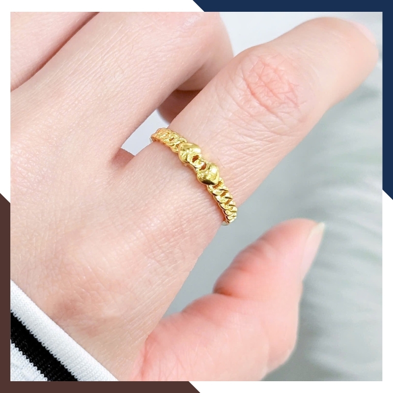 → Nhẫn được làm từ vàng tây 10k, bền đẹp và có độ sáng bóng tự nhiên. -