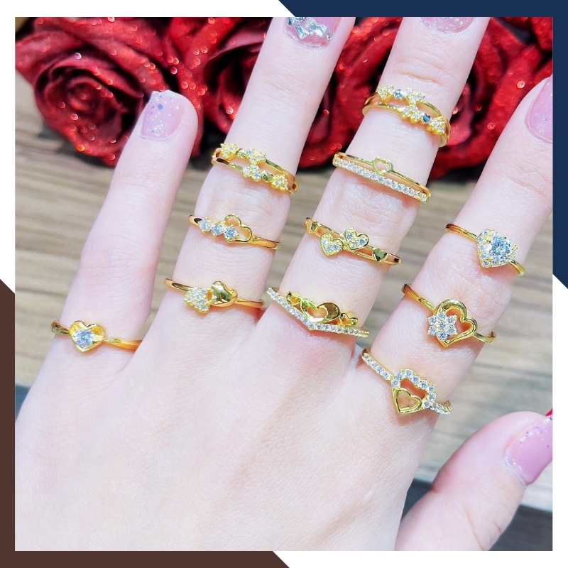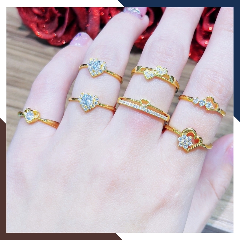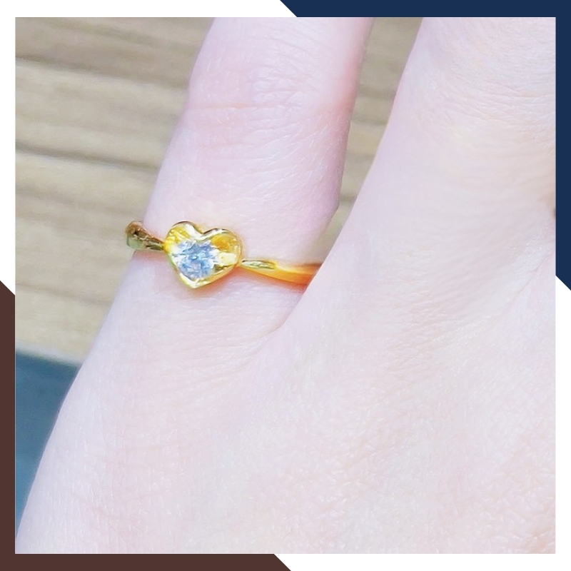 Mẫu 3: Trái tim tối giản: Dành cho những cô nàng thích sự tinh tế và thanh lịch, thiết kế nhẫn trái tim nhỏ gọn, đính đá sáng ở giữa, nổi bật trên nền vàng tây 10k. Kiểu dáng tối giản, dễ kết hợp với mọi trang phục, từ đi học, đi làm đến đi chơi.