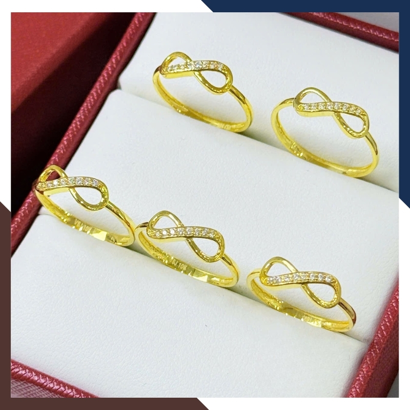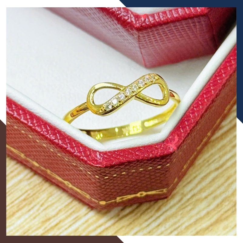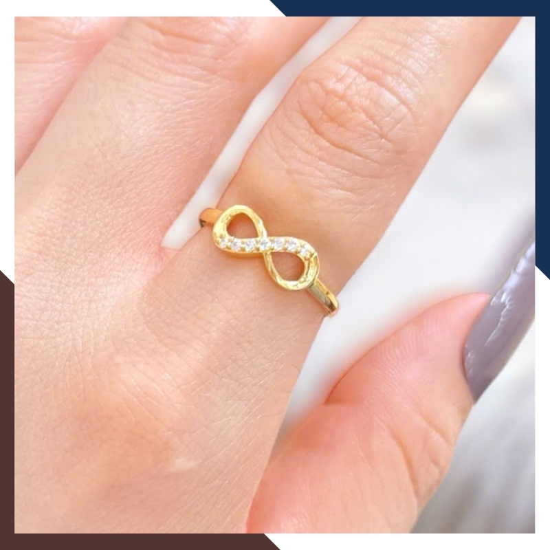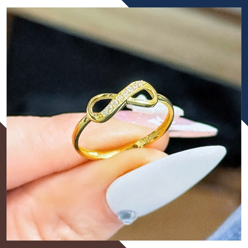 Nhẫn Vàng Tây Nữ 10k Hình Vô Cực Bản Mỏng NVN310, không chỉ là một chiếc nhẫn làm đẹp cho đôi tay mà còn là một thông điệp gửi gắm về sự cân bằng, may mắn và niềm tin trong cuộc sống.. Được chế tác tinh xảo từ vàng tây 10k cao cấp, kết hợp cùng đá CZ sáng lấp lánh, mẫu nhẫn mang biểu tượng vô cực (∞) – tượng trưng cho sự trường tồn, vĩnh cửu và tình yêu bất tận.