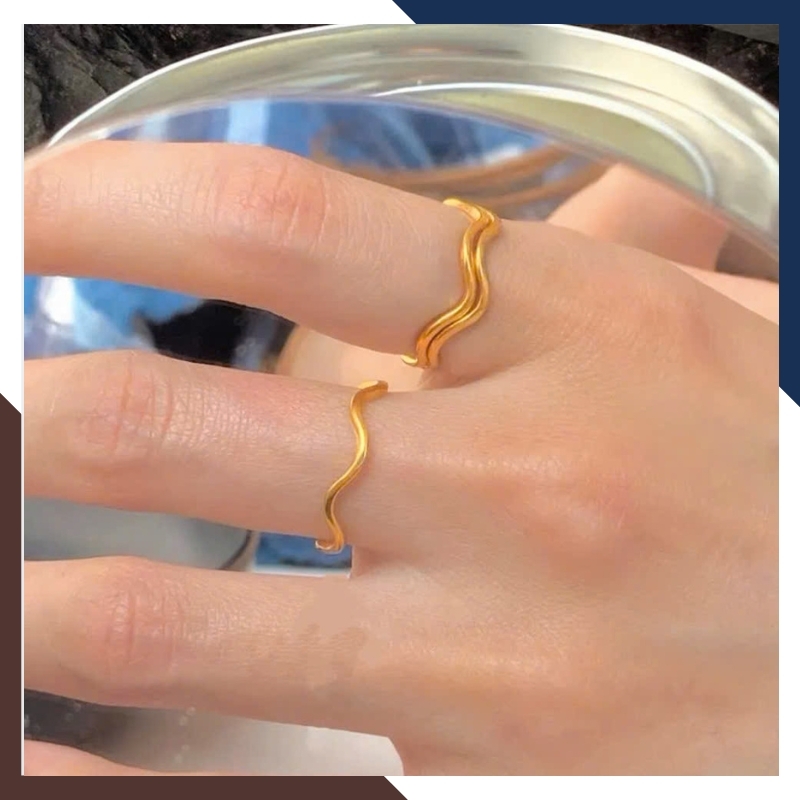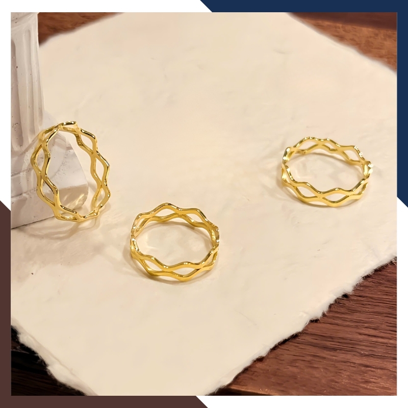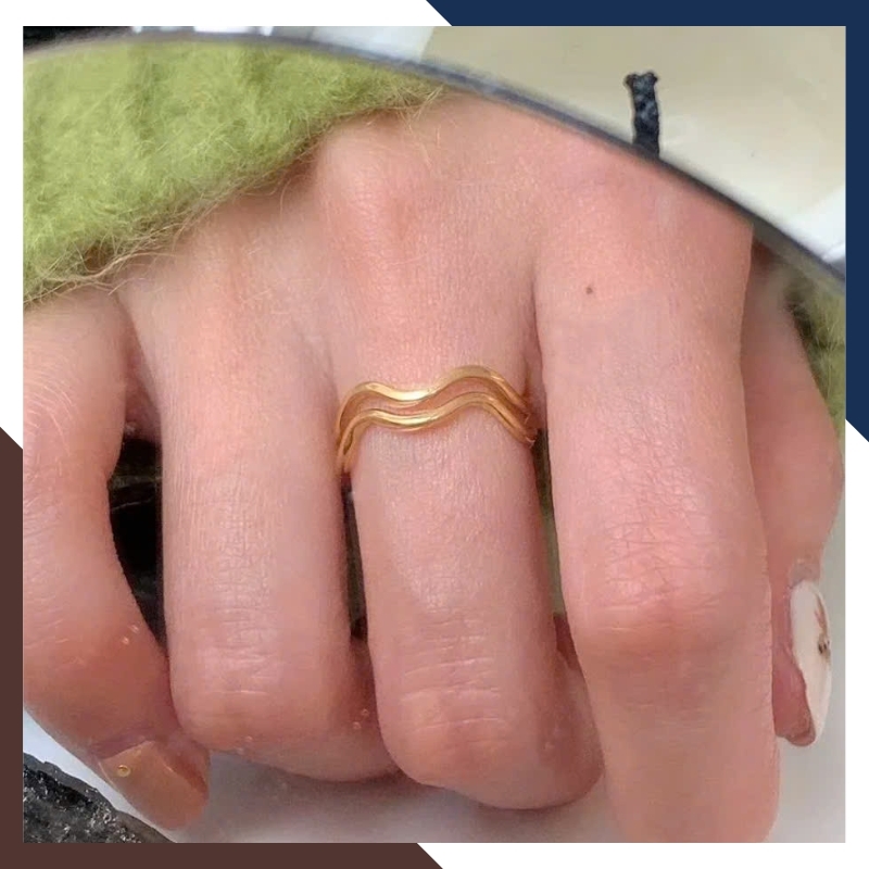 Nhẫn gợn sóng kép: Khi layering sẽ nổi bật hơn, rất hợp gu thời trang hiện đại và cá tính.