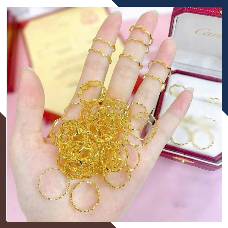 Nhẫn gợn sóng đơn: Phối cùng nhẫn trơn hoặc nhẫn đính đá → tạo sự hài hòa, thanh lịch.