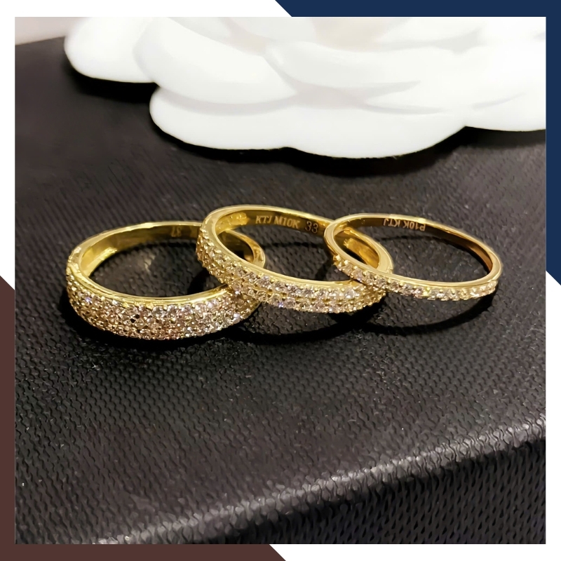 → Là mẫu nhẫn vàng 10k sang trọng, thiết kế tùy chọn 1, 2 hoặc 3 hàng đá CZ sáng lấp lánh. -