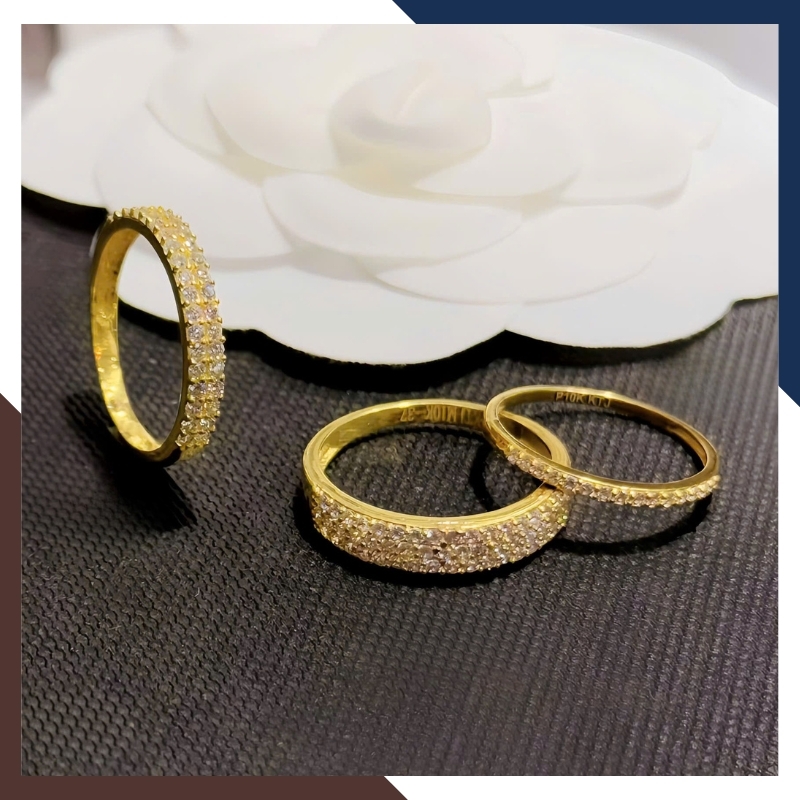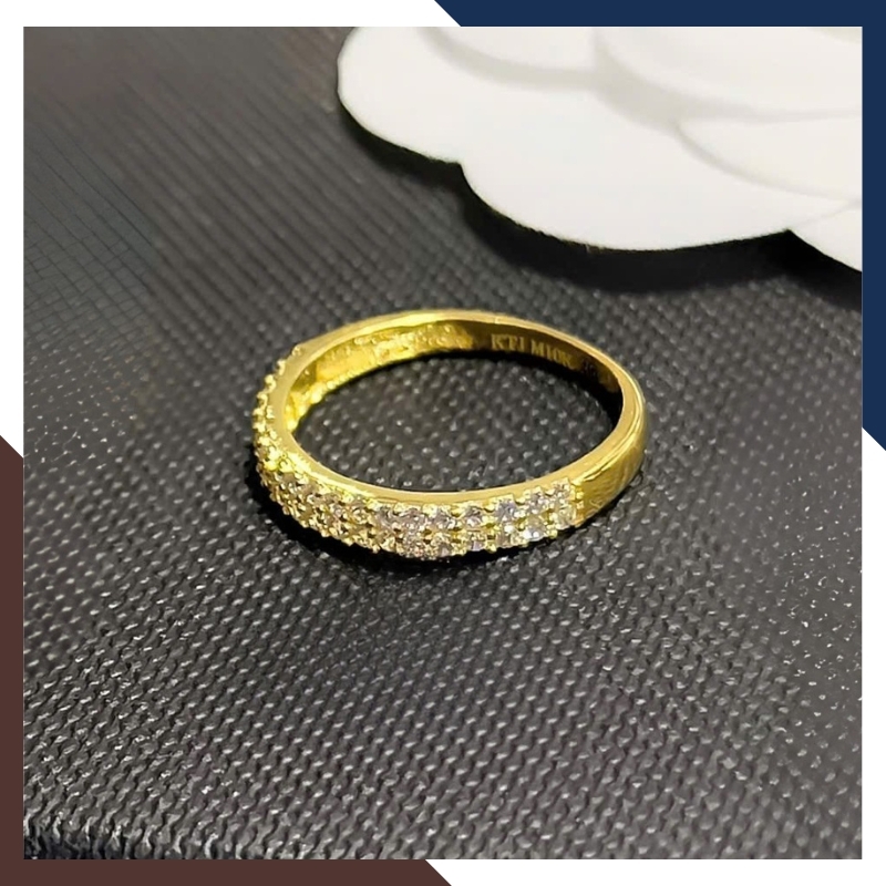 Nếu bạn yêu thích sự nhẹ nhàng, chiếc nhẫn vàng tây nữ 1 hàng đá chính là lựa chọn lý tưởng. Một dải đá CZ nhỏ xinh chạy dọc thân nhẫn tạo nên ánh sáng vừa đủ, điểm xuyết nét duyên dáng mà không quá phô trương. Phù hợp để đeo mỗi ngày, đi làm, hoặc kết hợp với các nhẫn khác để tạo layer tinh tế.