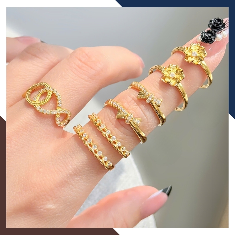 Nhẫn họa tiết cách điệu: Mang chút phá cách, hợp với cô nàng trẻ trung, sáng tạo.