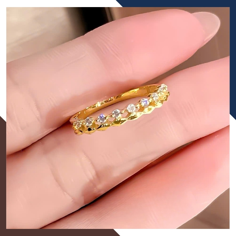 Nhẫn tròn basic gắn đá: Đơn giản, nhẹ nhàng, dễ đeo hằng ngày.