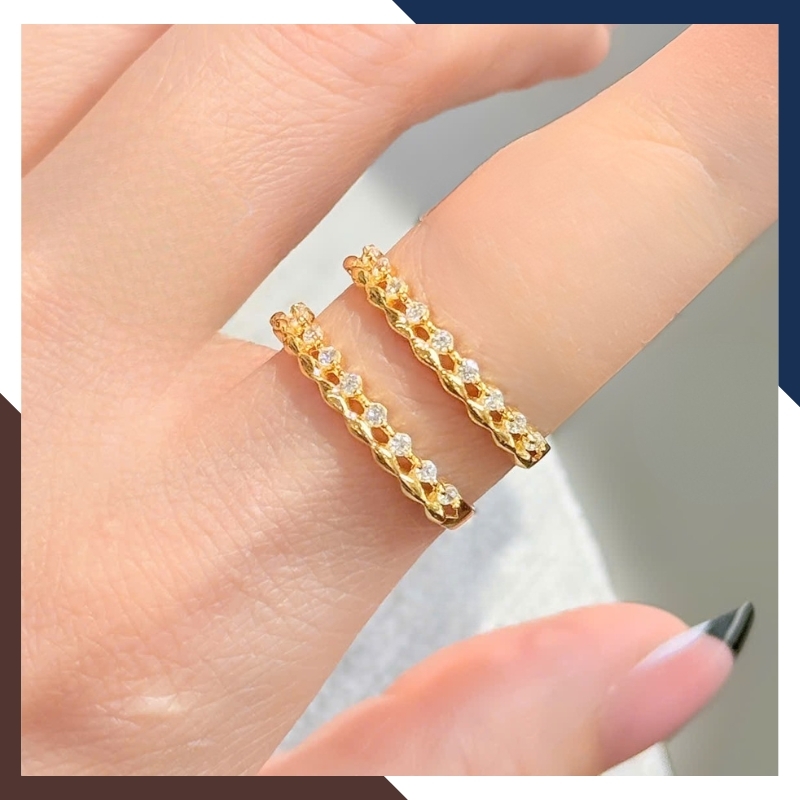 → Có, nhẫn mảnh dễ layering cùng nhẫn khác để tạo điểm nhấn. -