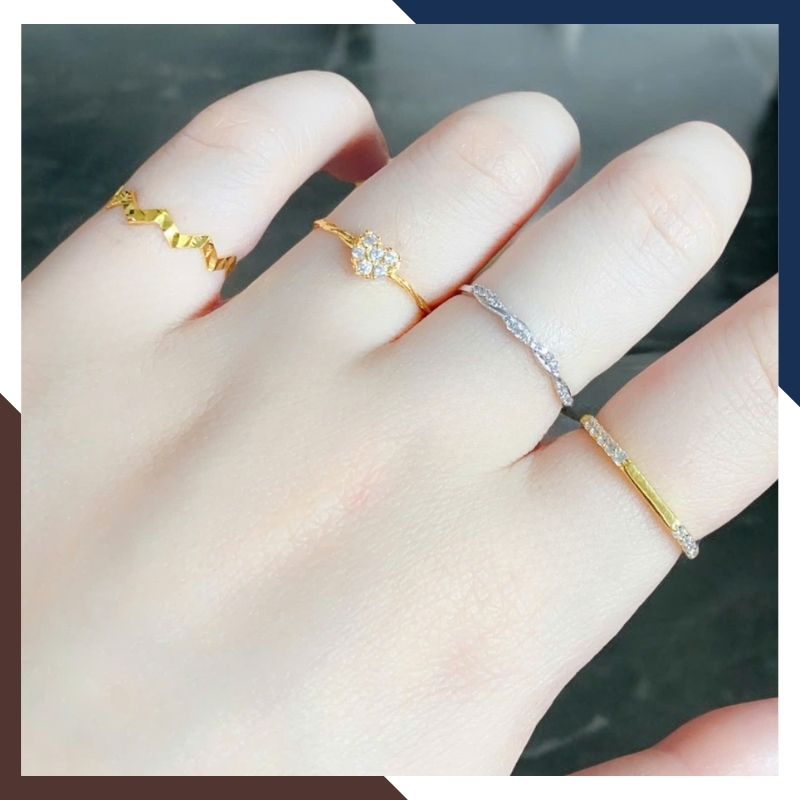 → Đây là bộ sưu tập 4 mẫu nhẫn vàng tây 10K, bản mảnh, thiết kế tinh tế, phù hợp phong cách layering, giá dưới 2 triệu.