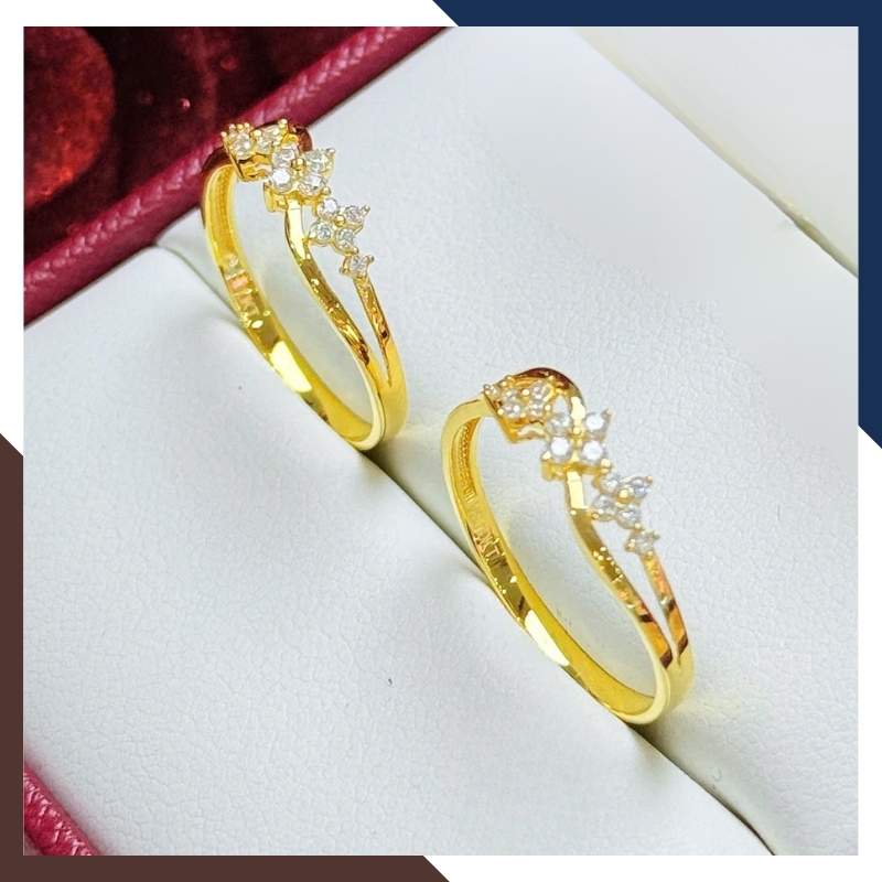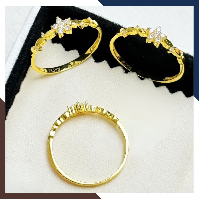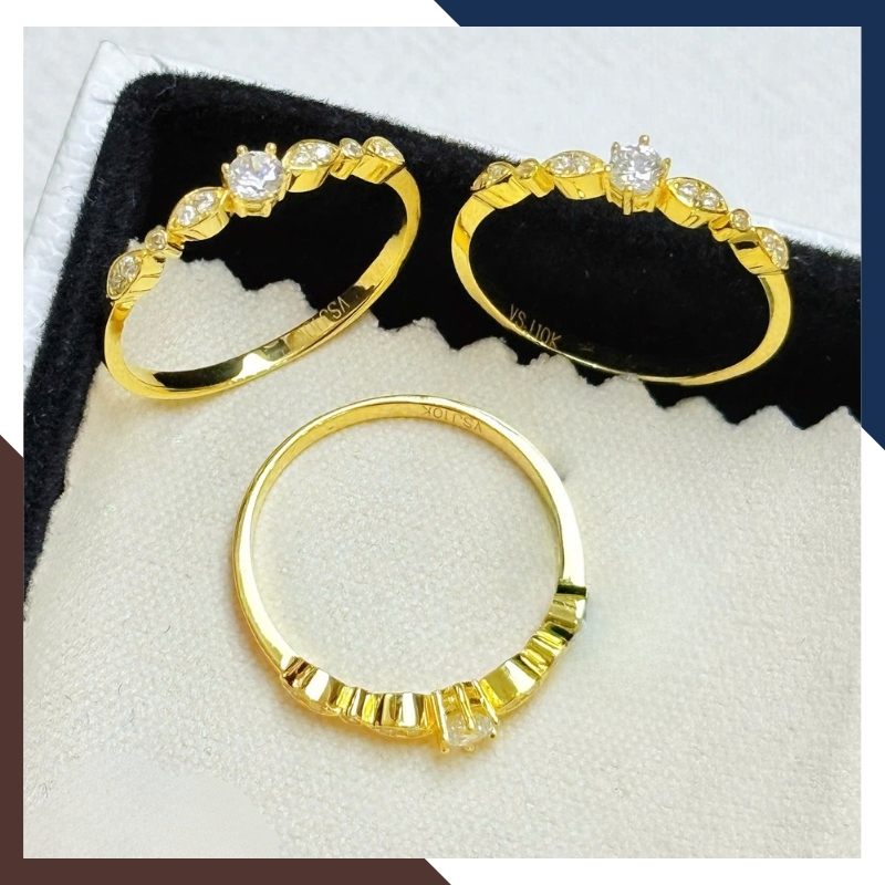 → Nhẫn chế tác từ vàng tây 10K kết hợp đá đính, vừa sáng đẹp vừa bền chắc.