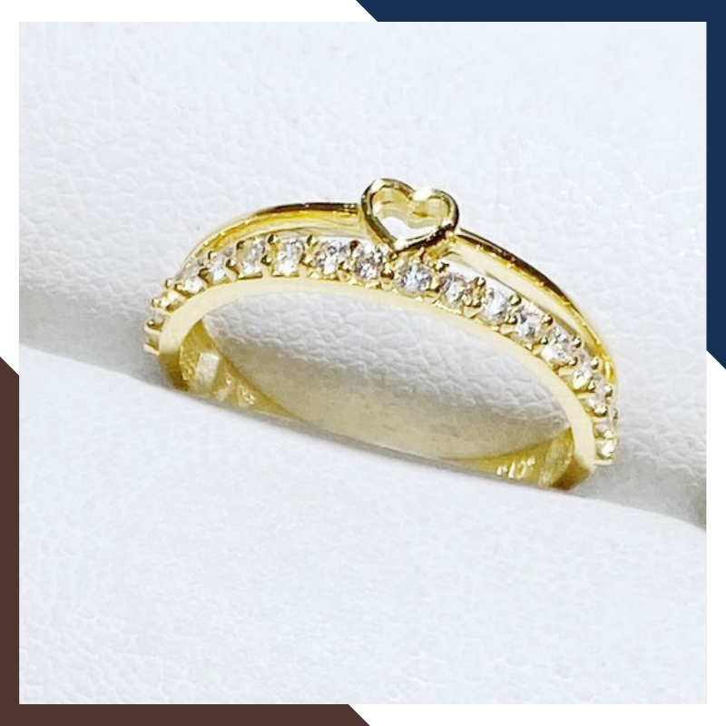 Nhẫn vàng tây trái tim 10k 2 vòng đơn giản tặng người yêu, bạn gái đeo ngón trỏ đẹp mã TL33, được làm từ chất liệu vàng Tây 10K với đặc tính không gây kích ứng cho da, đảm bảo độ bền và sáng bóng theo thời gian. Điểm nhấn của mẫu nhẫn này chính là thiết kế kiểu nhẫn 2 vòng mặt hình trái tim nhỏ xinh. Với trọng lượng 3.3 phân vàng 10k, mẫu thiết kế đơn giản này phù hợp tặng người yêu, bạn gái đeo ngón trỏ không chỉ tạo nên một vẻ ngoài sang trọng, cuốn hút cho phái đẹp mà còn tạo cảm giác thoải mái khi đeo và dễ dàng kết hợp với nhiều loại trang phục khác nhau, từ trang phục hàng ngày, trang phục dạo phố cho đến trang phục công sở hay trang phục dự tiệc. Khi đeo chiếc nhẫn này mang lại một vẻ đẹp nhẹ nhàng, thanh lịch và không gian cho những cô nàng có phong cách đằm thắm tỏa ra một năng lượng tích cực và lãng mạn, thu hút mọi ánh nhìn xung quanh.