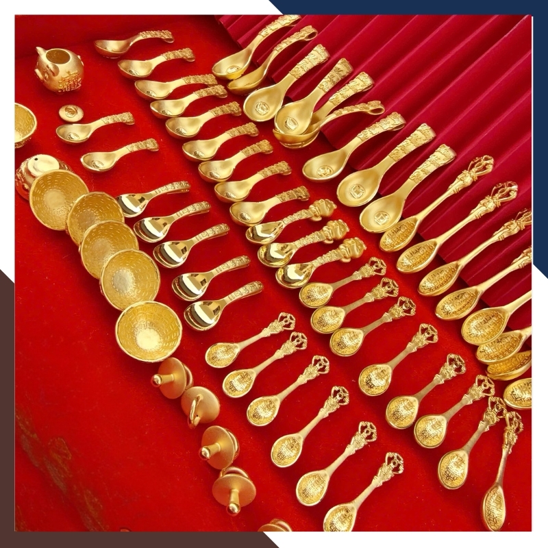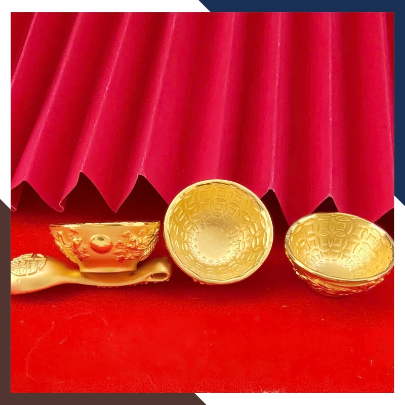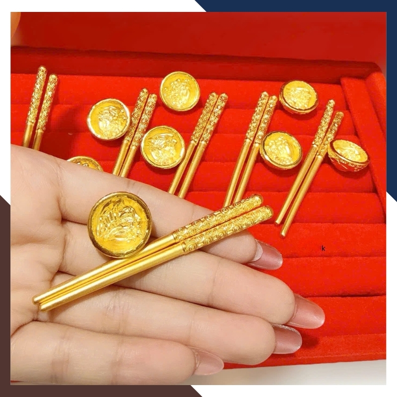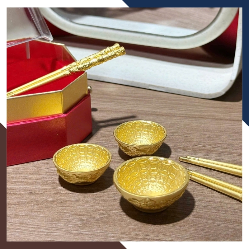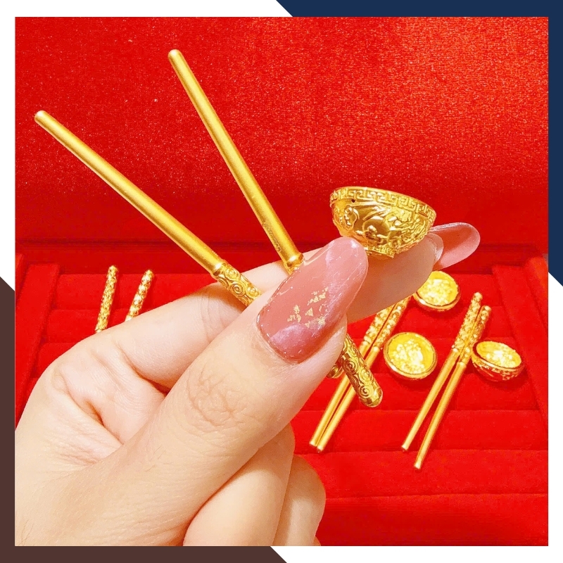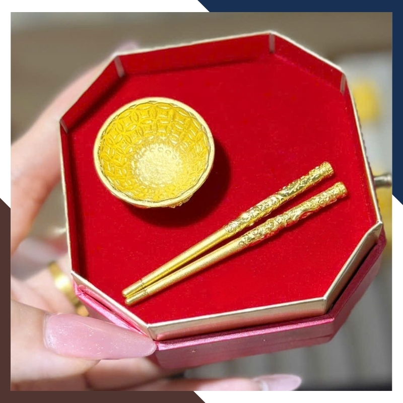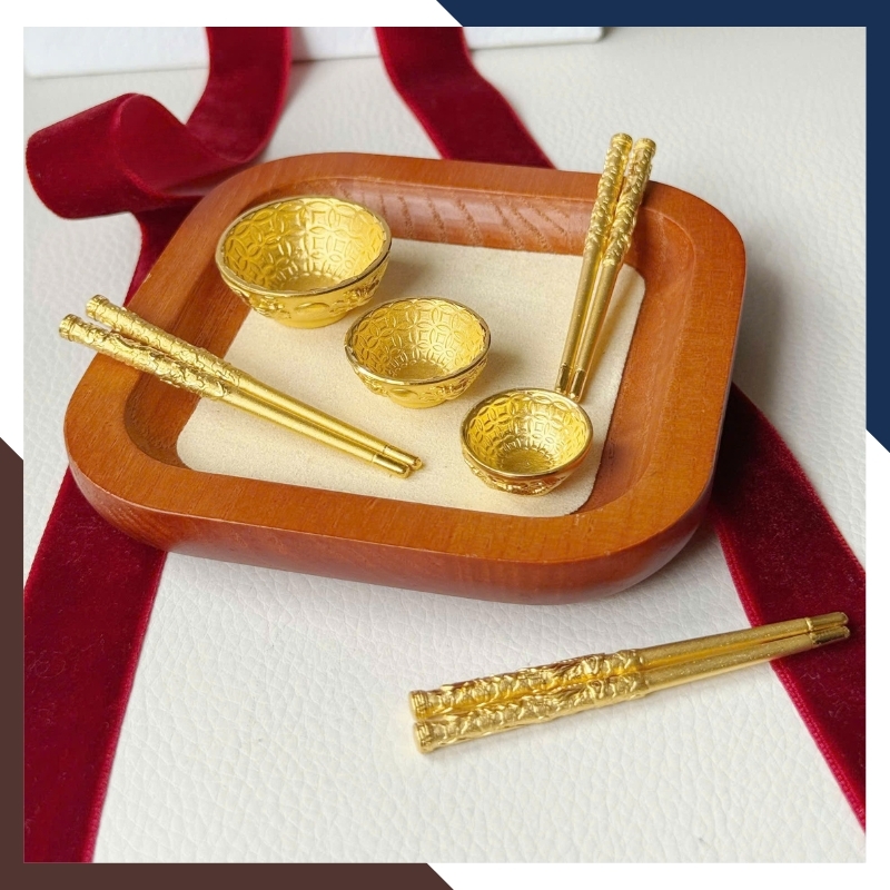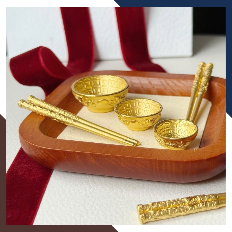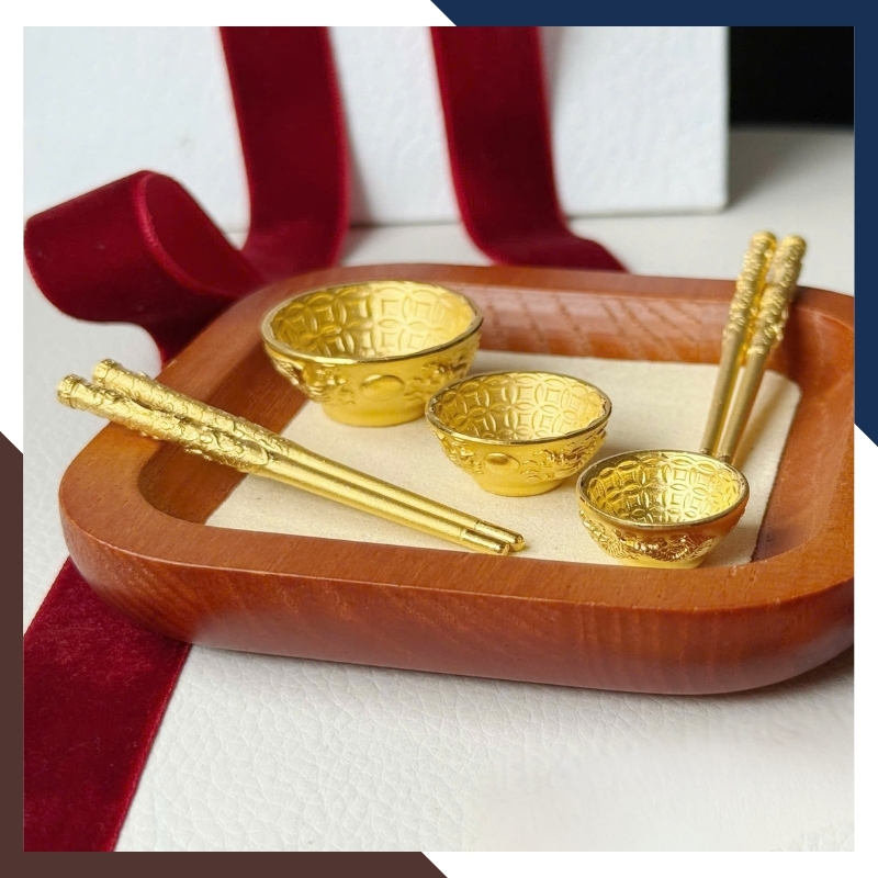 Trong văn hóa quà tặng hiện đại, bát – đũa vàng thường đại diện cho lời chúc đủ đầy và gắn kết gia đình. Trên QTV32, các chi tiết này được thu nhỏ thành kỷ vật bằng vàng 24K, hướng đến lưu giữ kỷ niệm hơn là mục đích sử dụng. Họa tiết khắc nổi mang tính trang trí nhẹ, không đặt nặng phong thủy nghi lễ, phù hợp với người coi trọng giá trị biểu trưng và sự tinh tế trong quà tặng.
