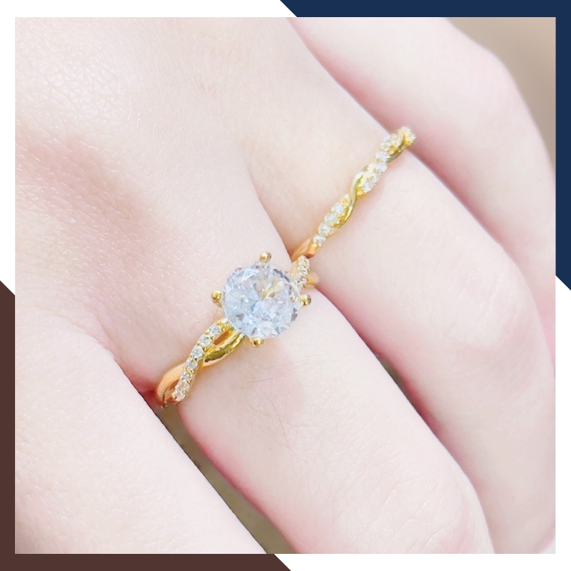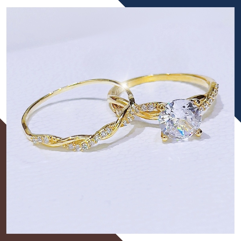 Nhẫn xoắn ~2.2 phân, nhẫn đính hột ~4.8 phân vàng 10K, nhẹ nhàng, dễ đeo hằng ngày. -