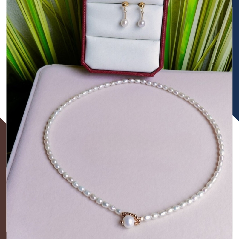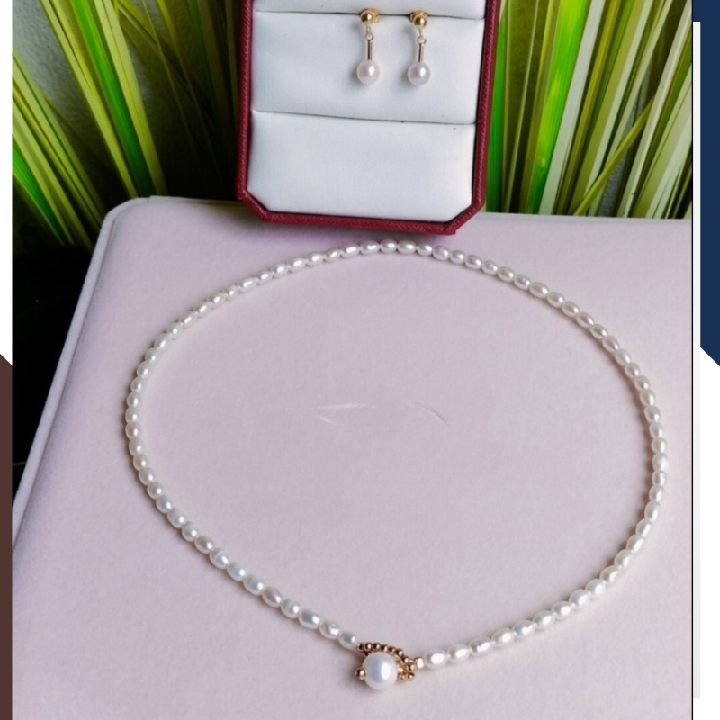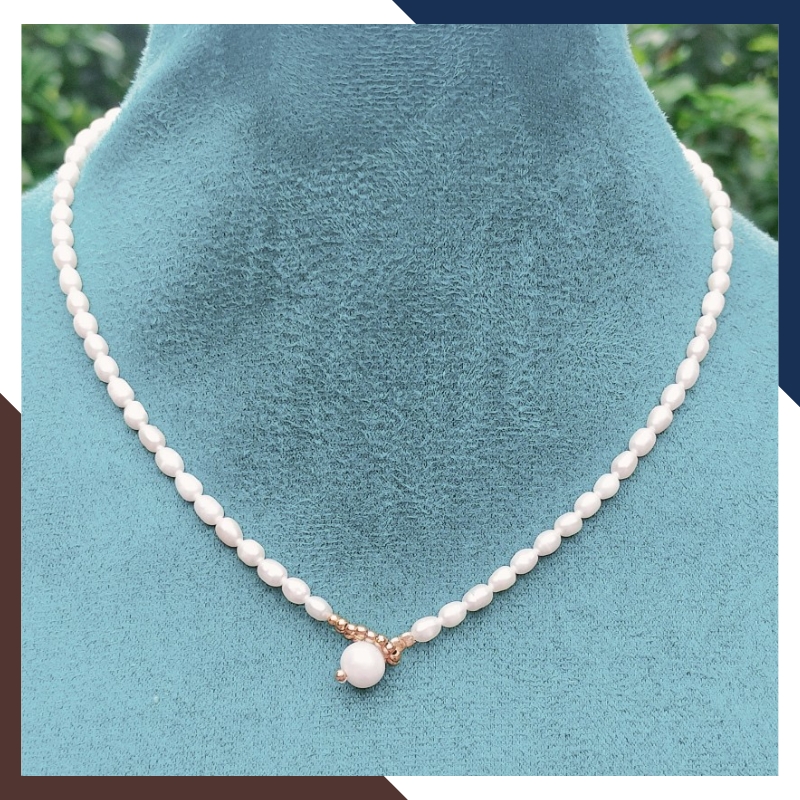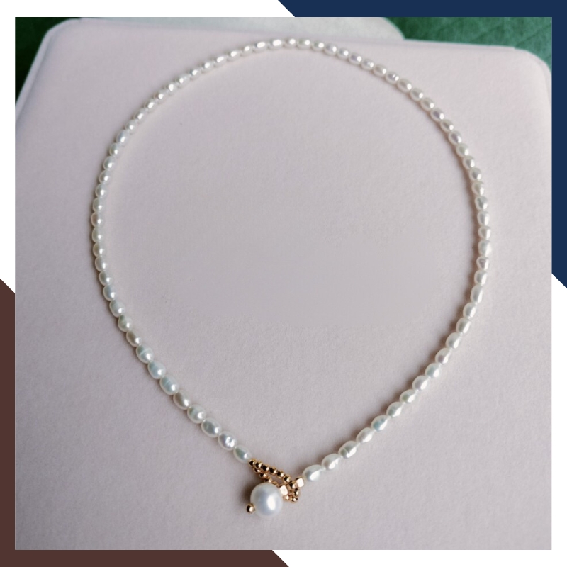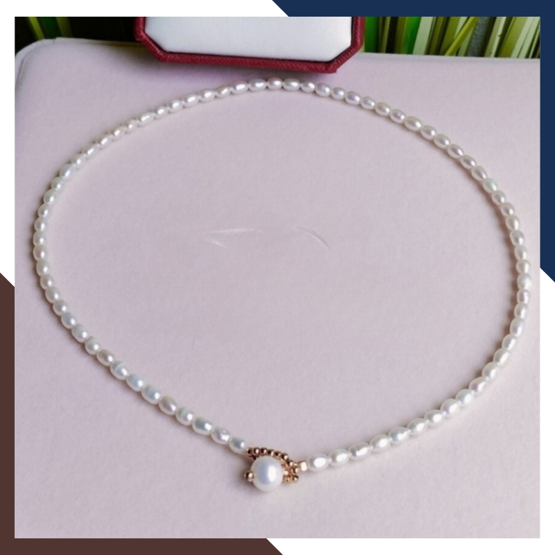 Vòng cổ sử dụng ngọc trai hạt gạo nhỏ 3-4mm